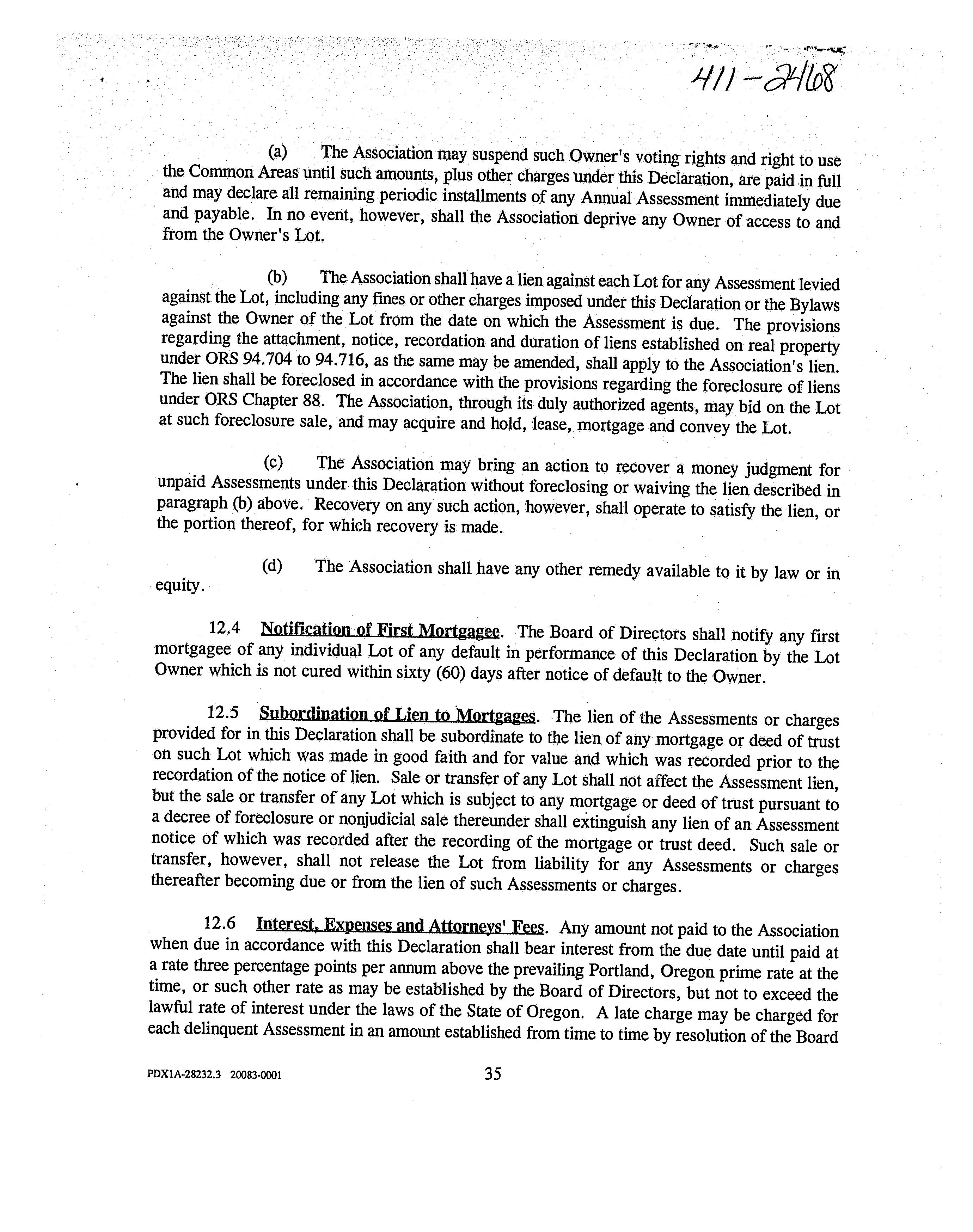 D. Declarant anticipates that joint use agreements may be entered into between the various owners associations at Eagle Crest and The Ridge at Eagle Crest that would permit the joint use of facilities uponcertainterms and conditions. PDX1A-28232.3 20083-0001