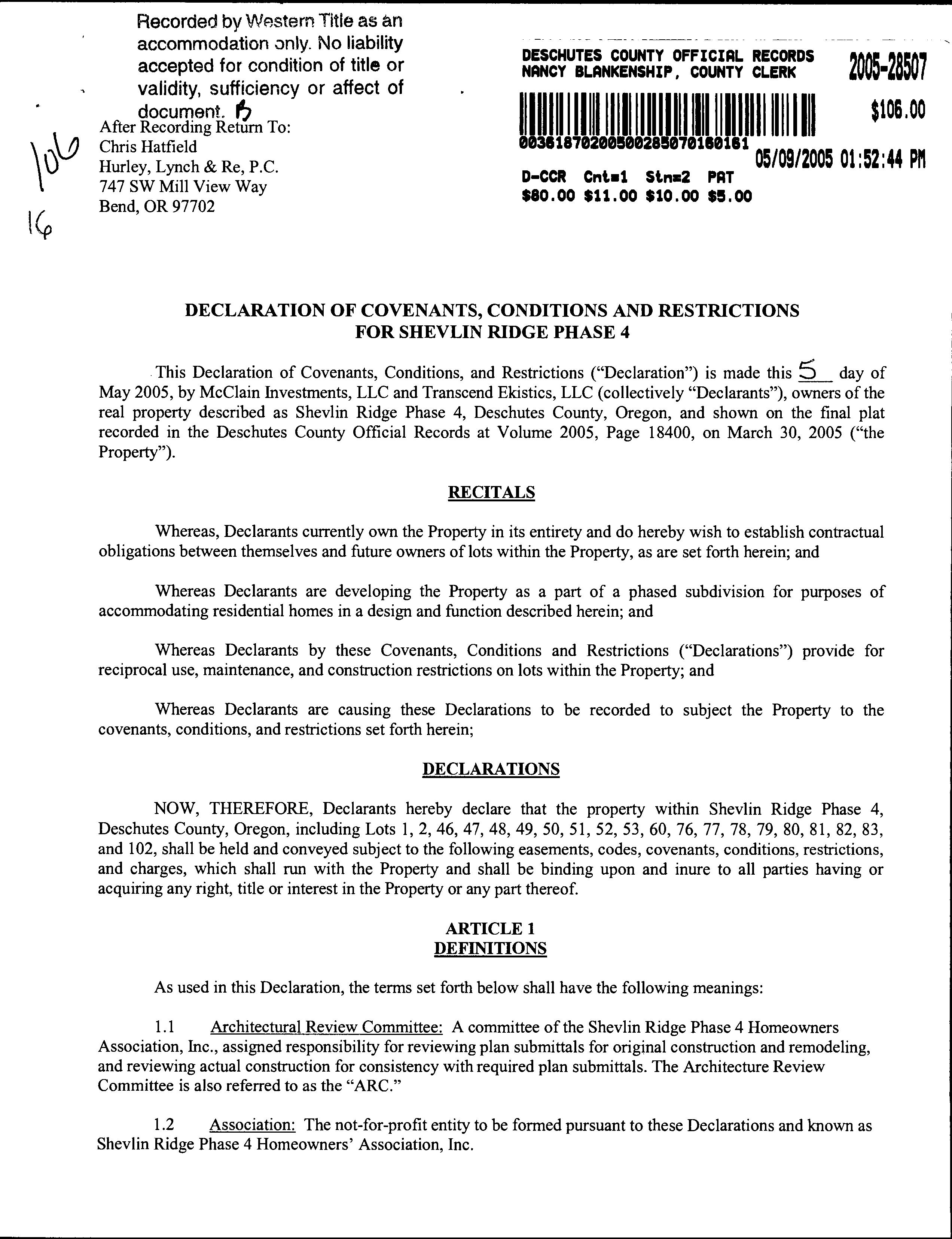 Shevlin Ridge Ph 4 CC&R by info-deschutestitle - Issuu