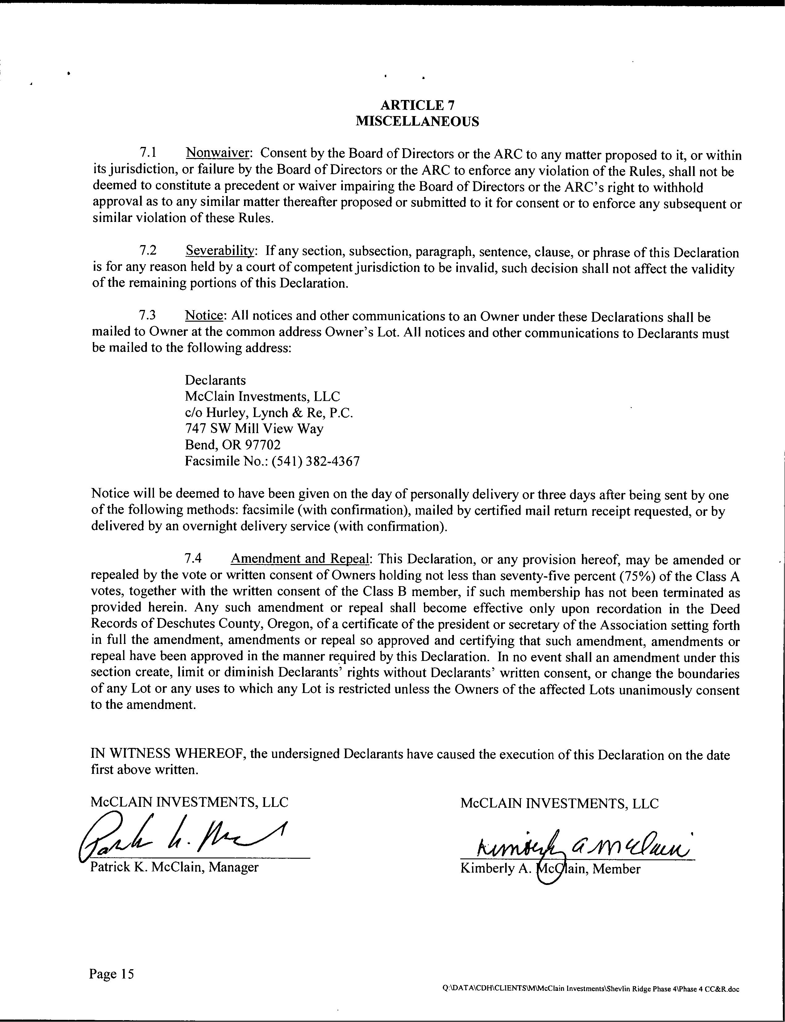 Shevlin Ridge Ph 4 CC&R's by info-deschutestitle - Issuu