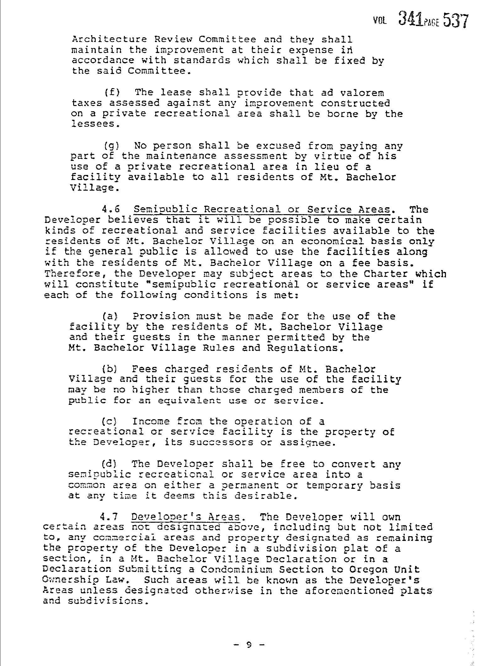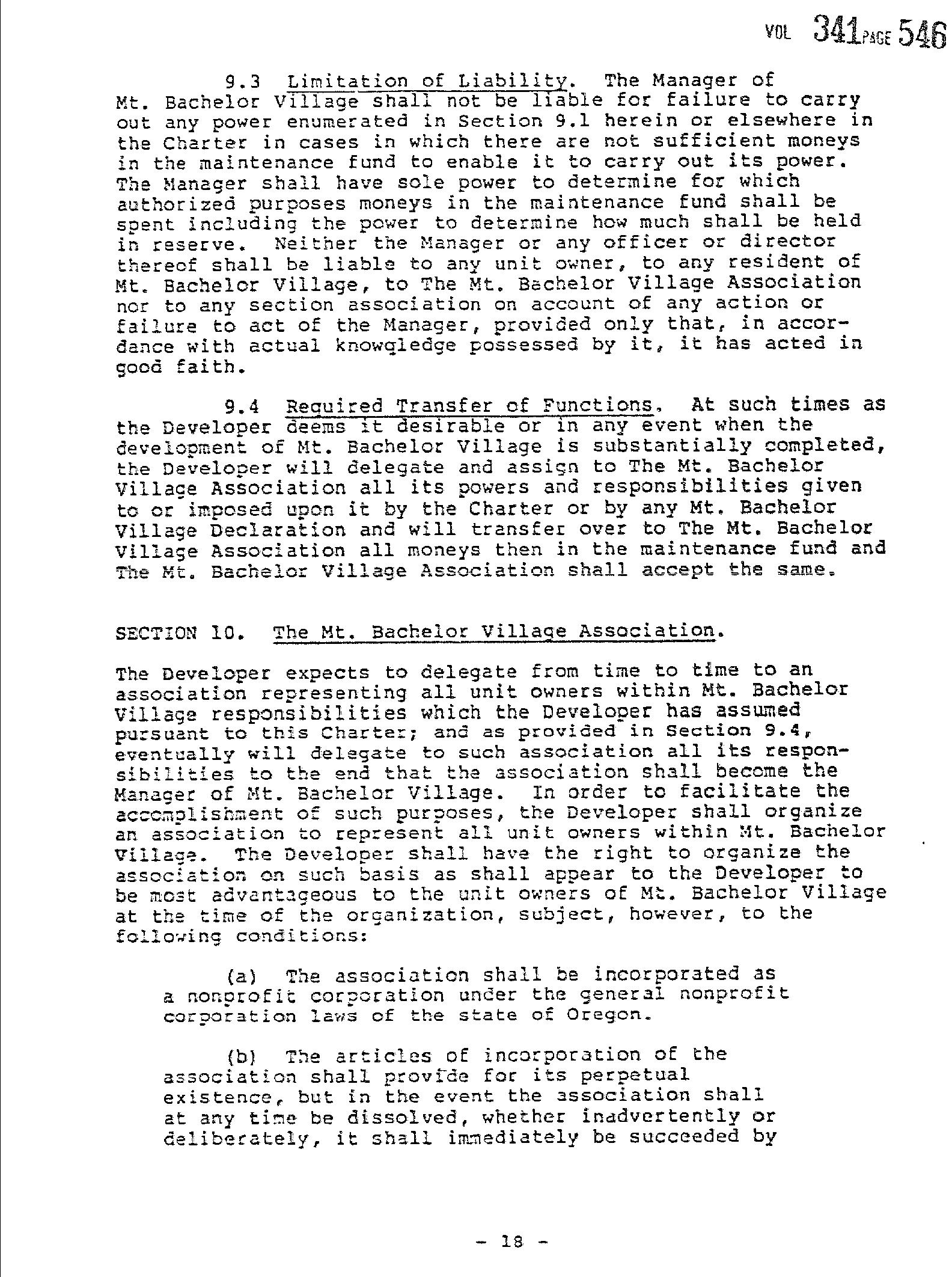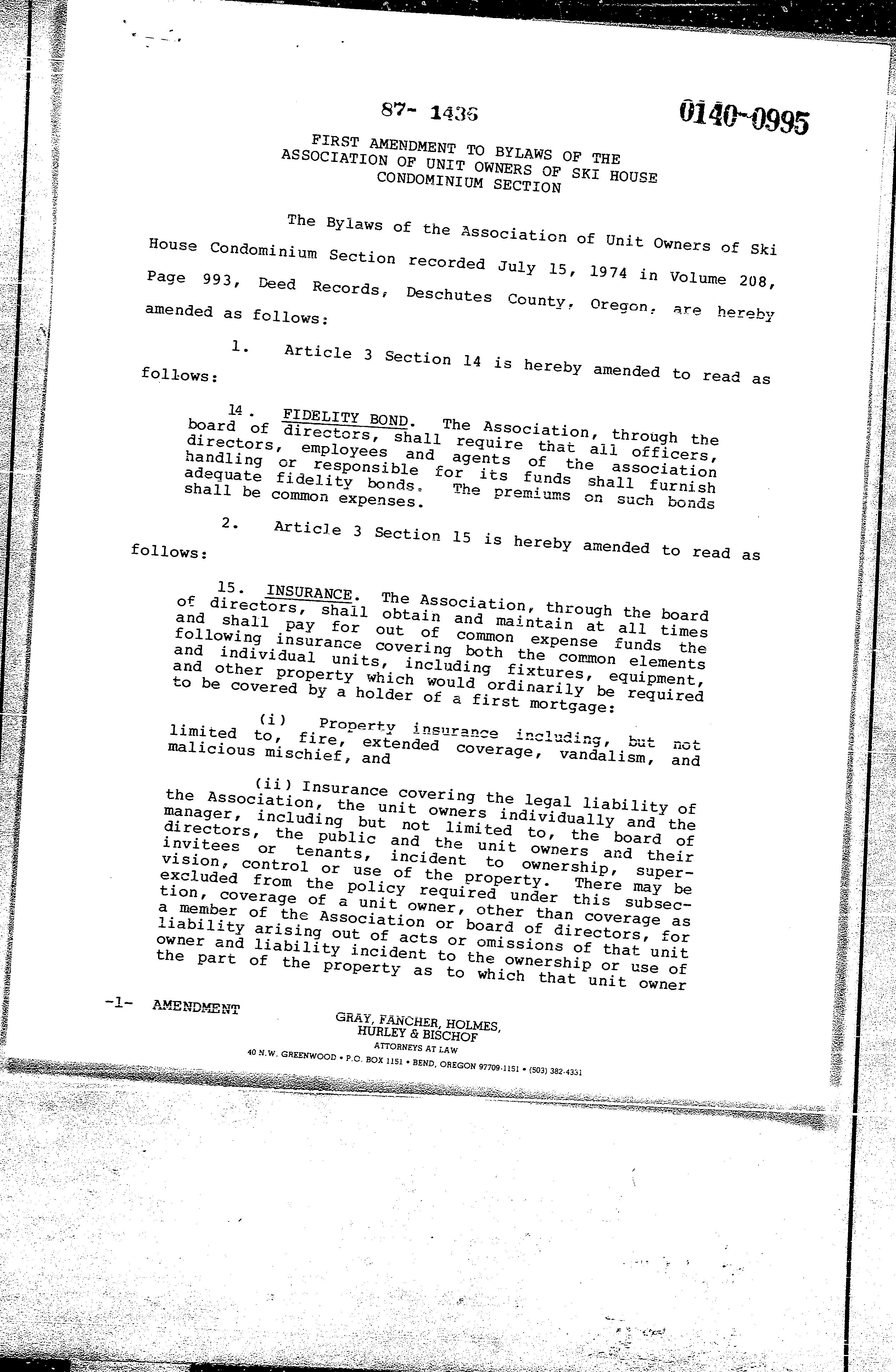 Ski House Condominiums Section Mt Bachelor Village CC&R's