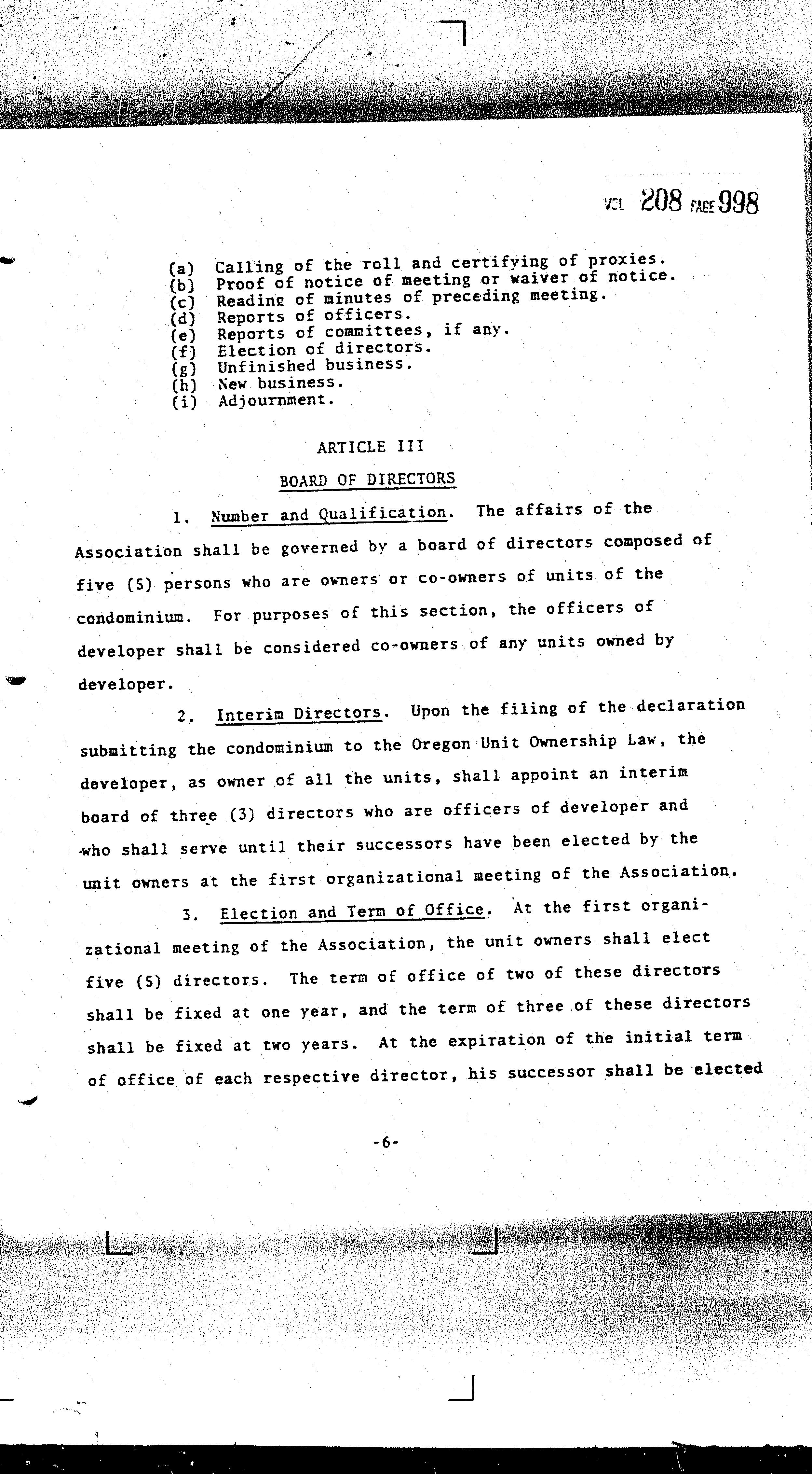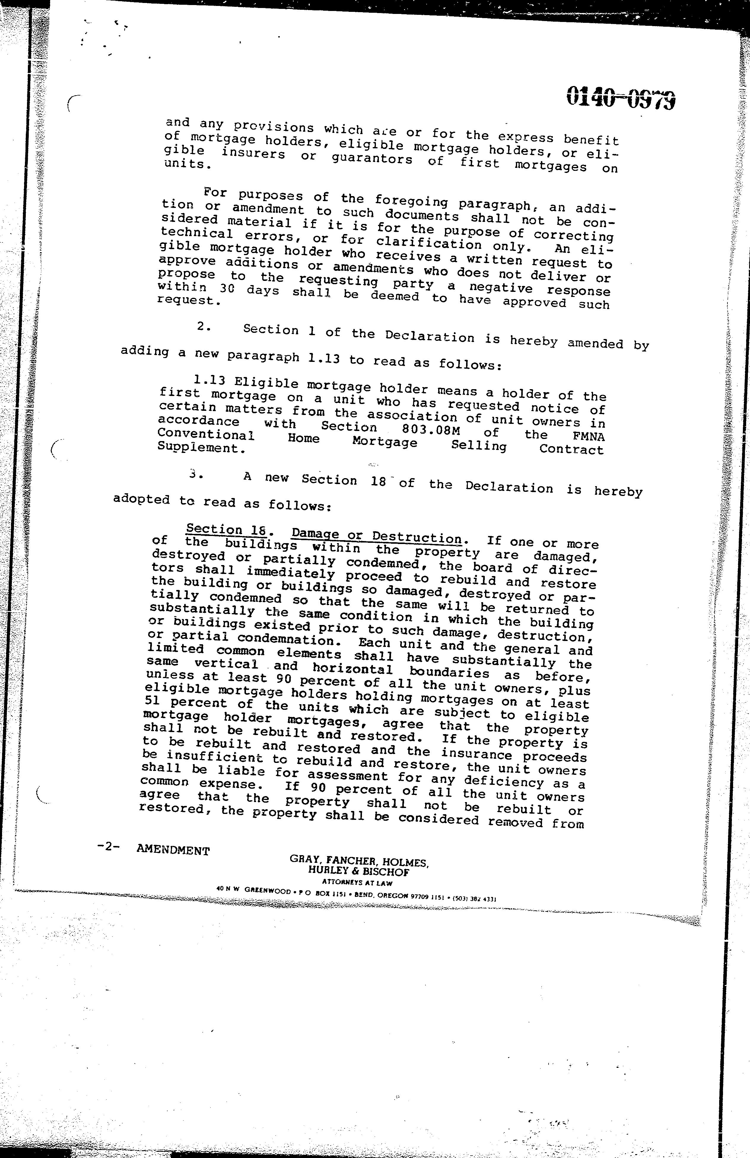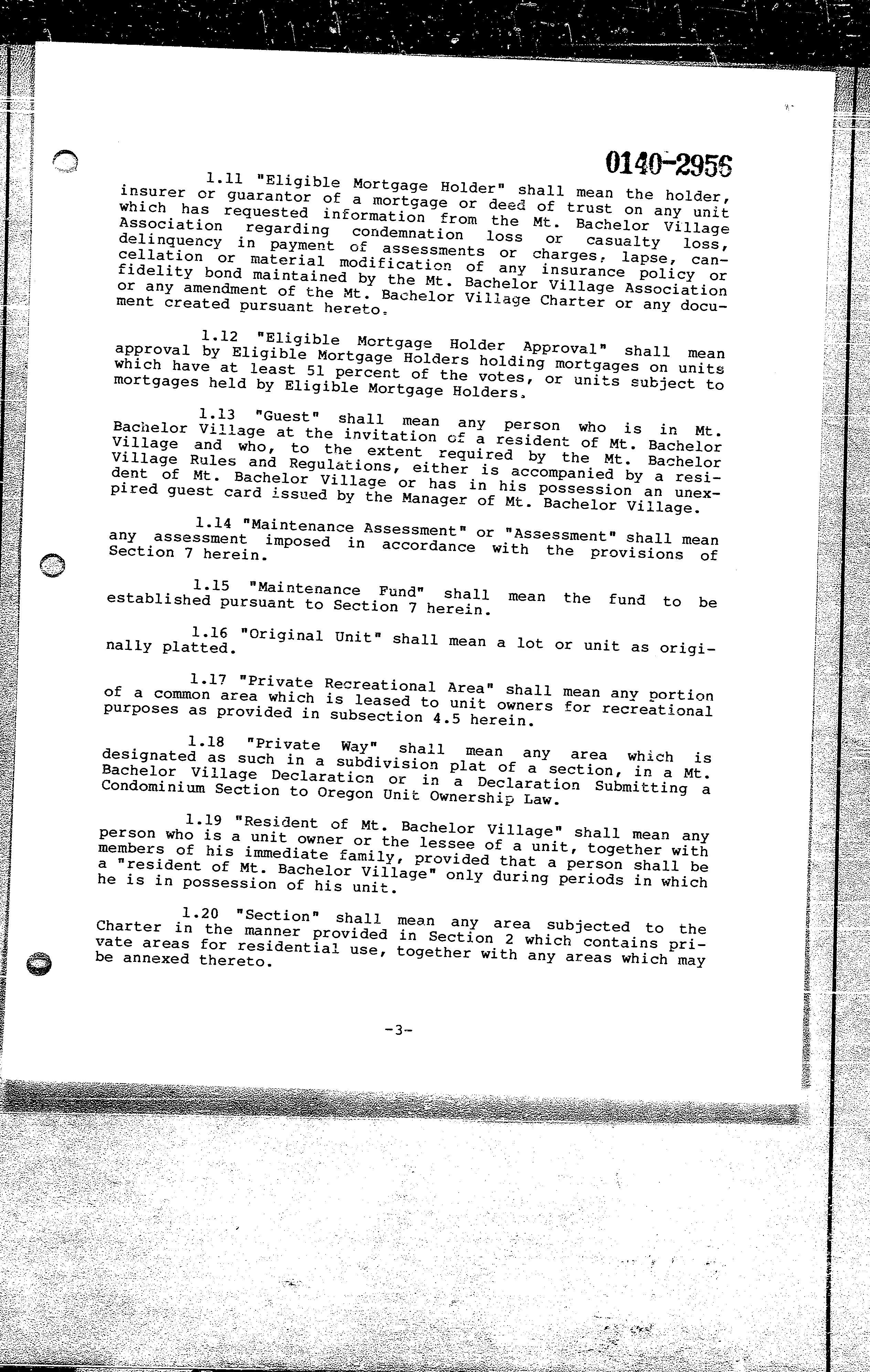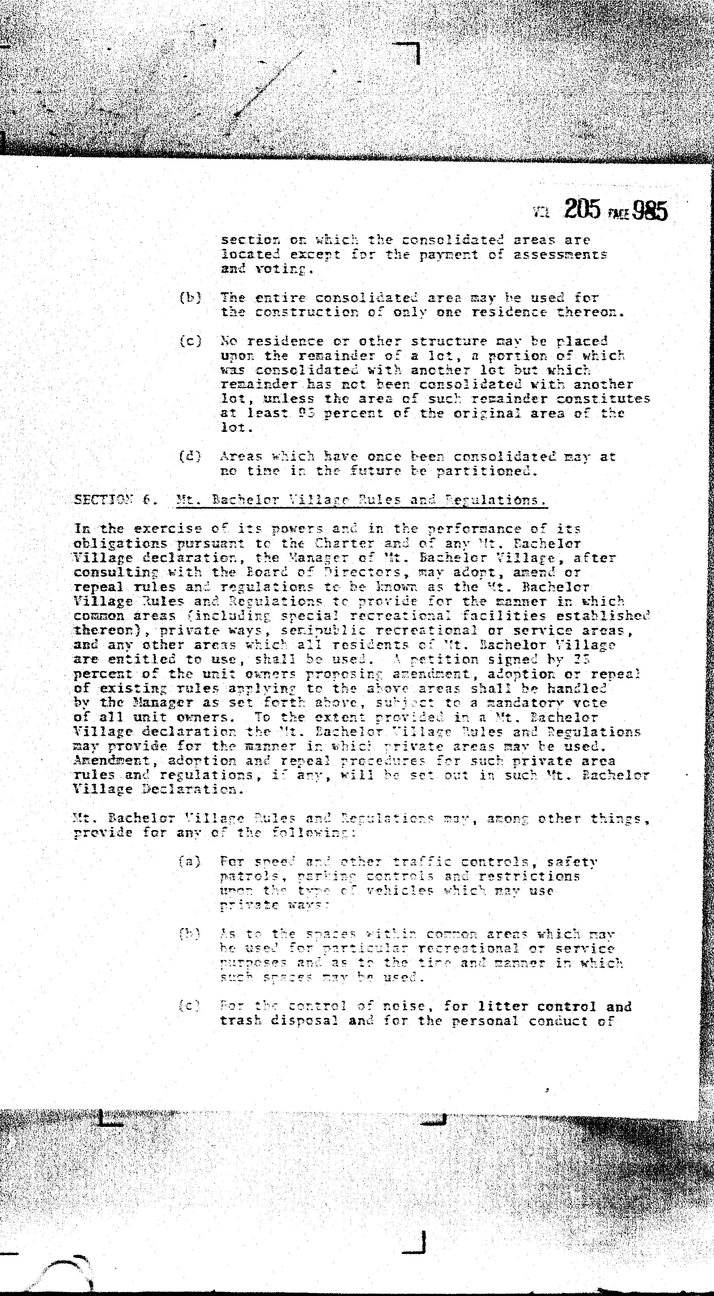 Ski House Condominiums Section Mt Bachelor Village CC&R's