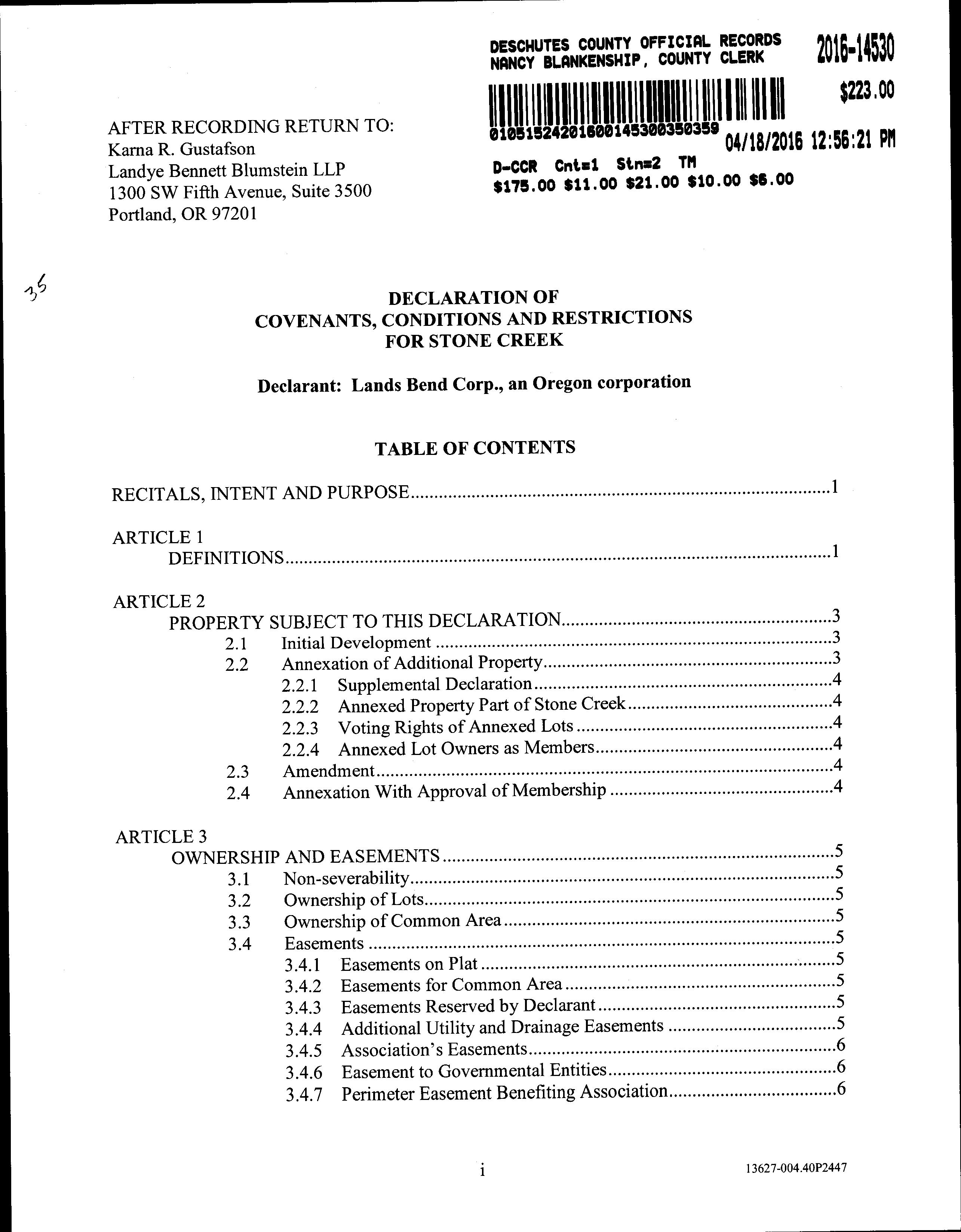 Omitted from the attached document is any covenant or restriction that is based upon, but not necessarily limited to, race, color, religion, sex, sexual orientation, familial status, marital status, disability, handicap, national origin, ancestry, source of income, gender, gender identity, gender expression, medical condition or genetic information, as set forth in applicable state or federal law, except to the extent that such covenant or restriction is permitted by applicable law. Oregon Version 20150707