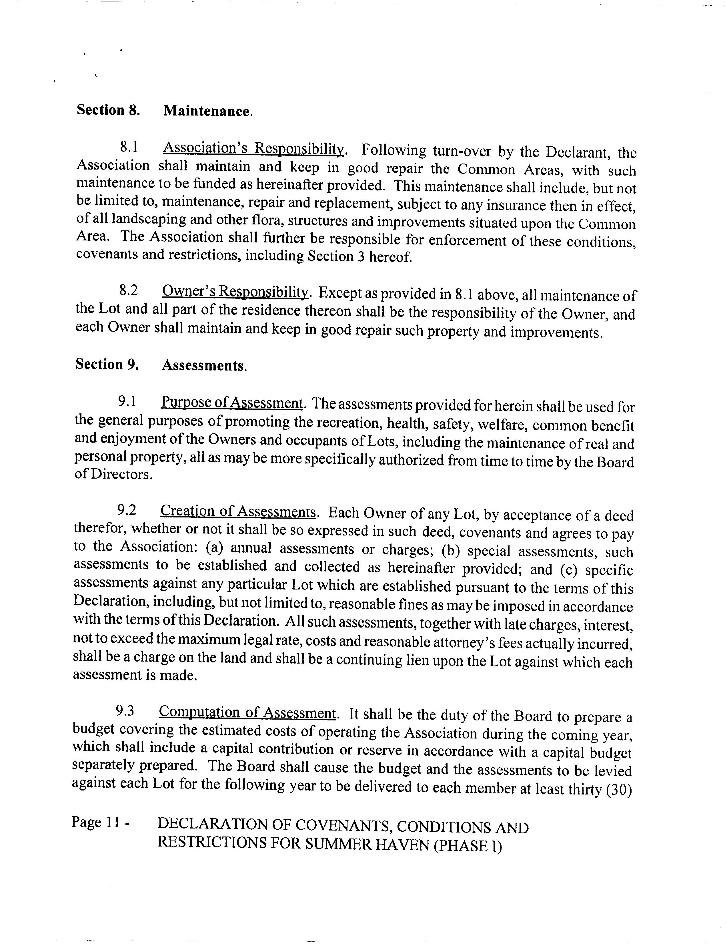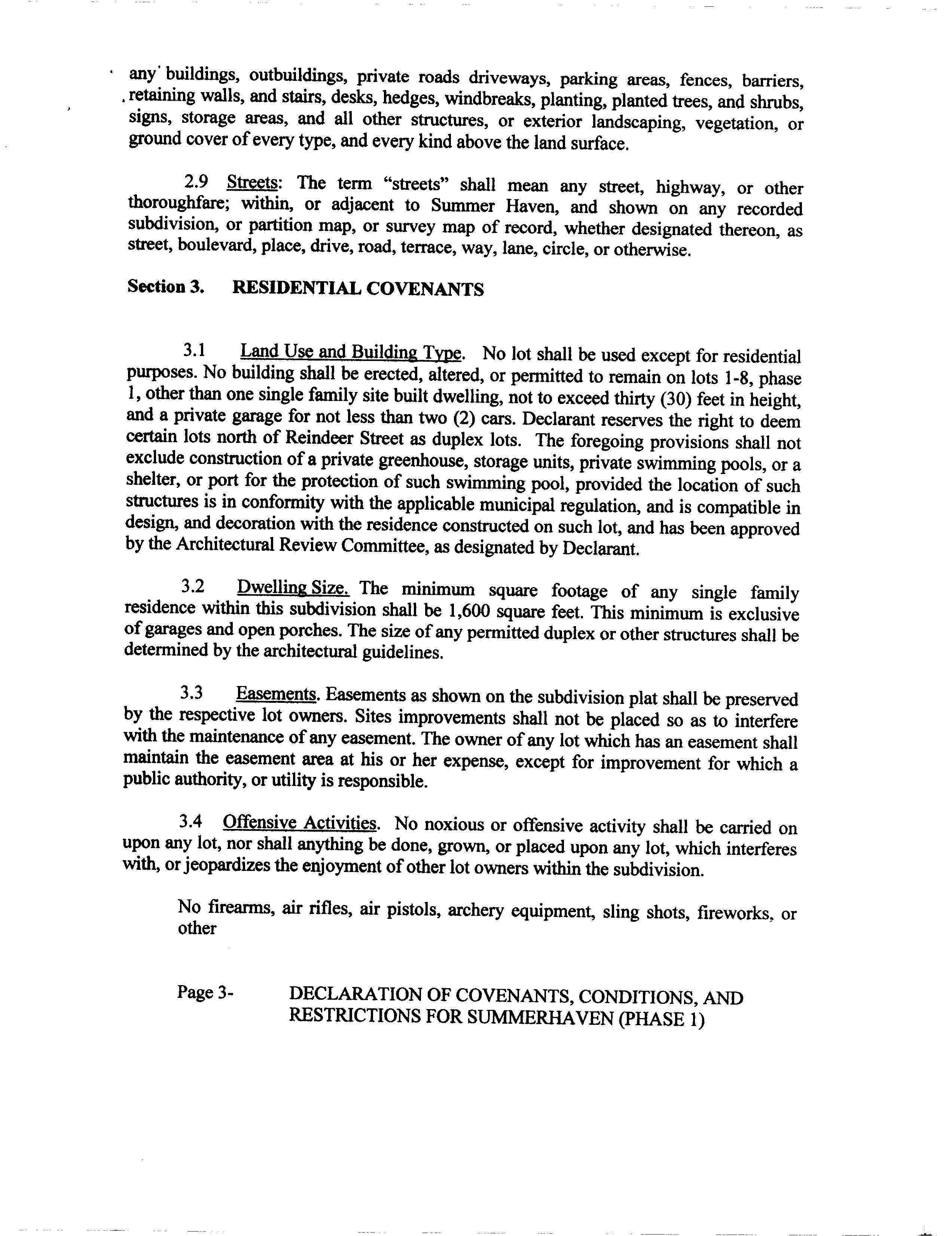Summerhaven Phase 1 - CC&R's