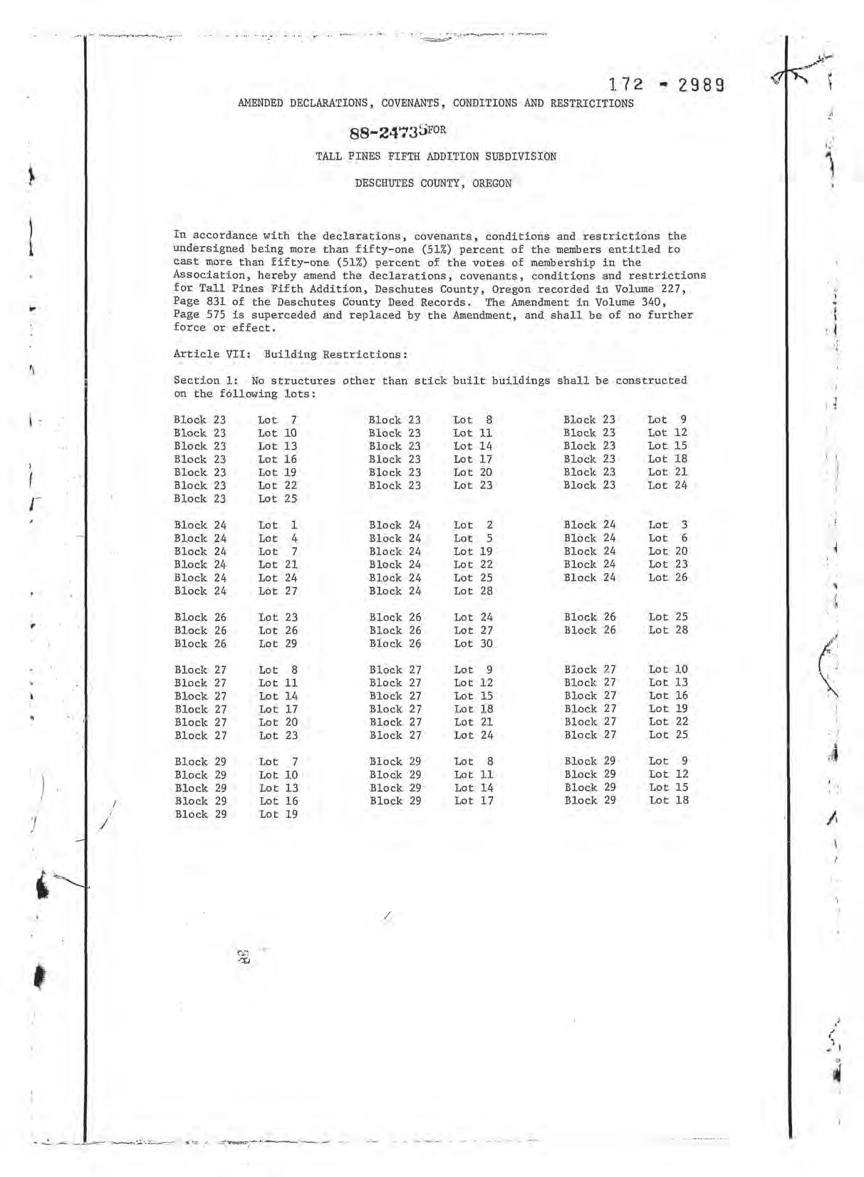 Tall Pines, 5th Addition - CC&R's