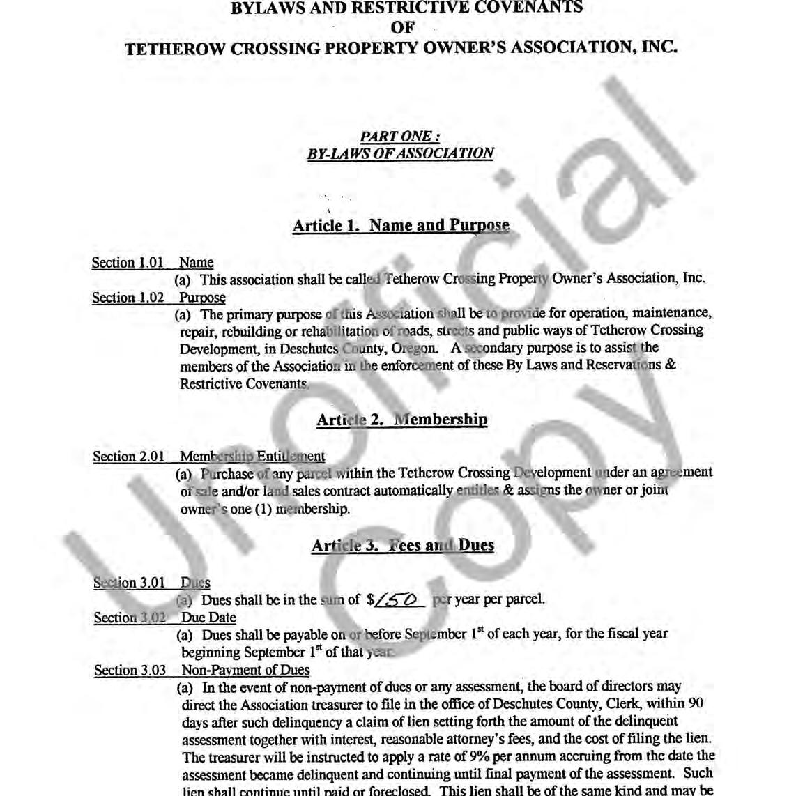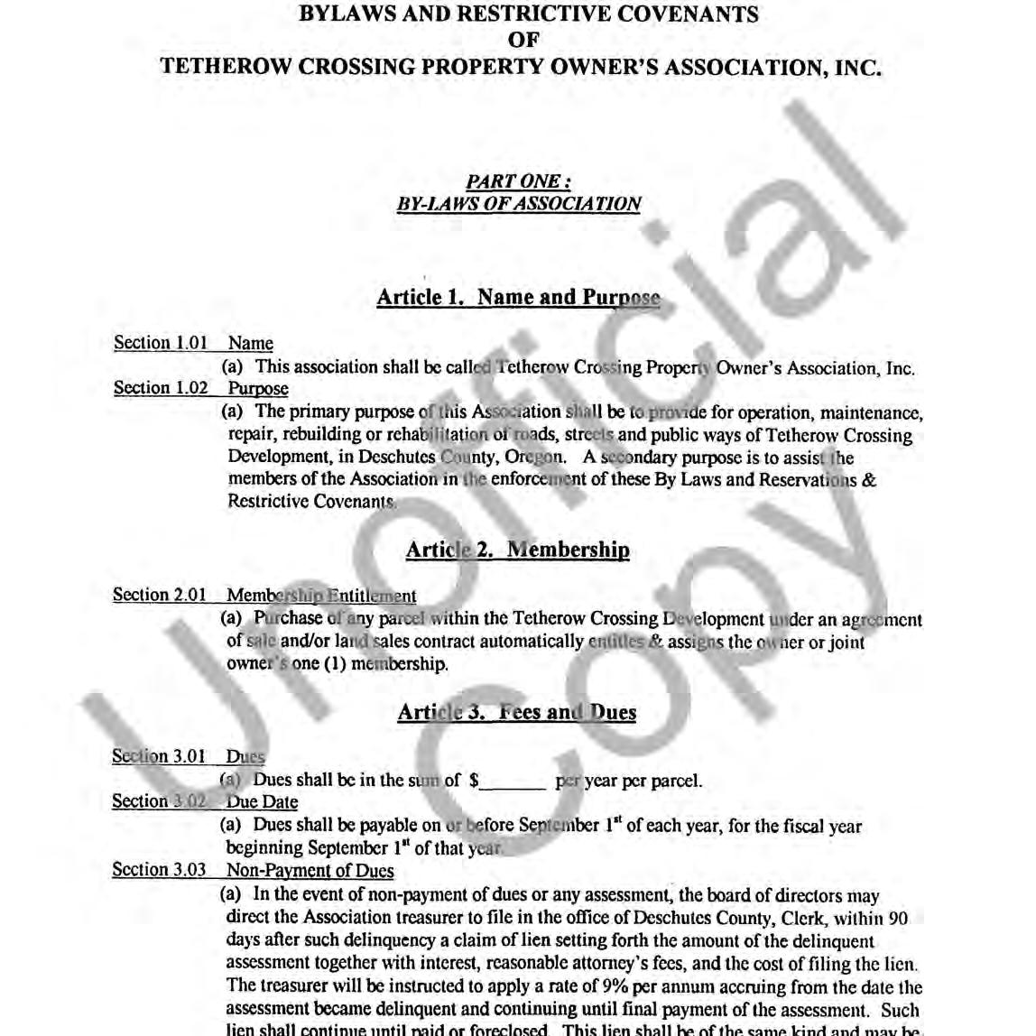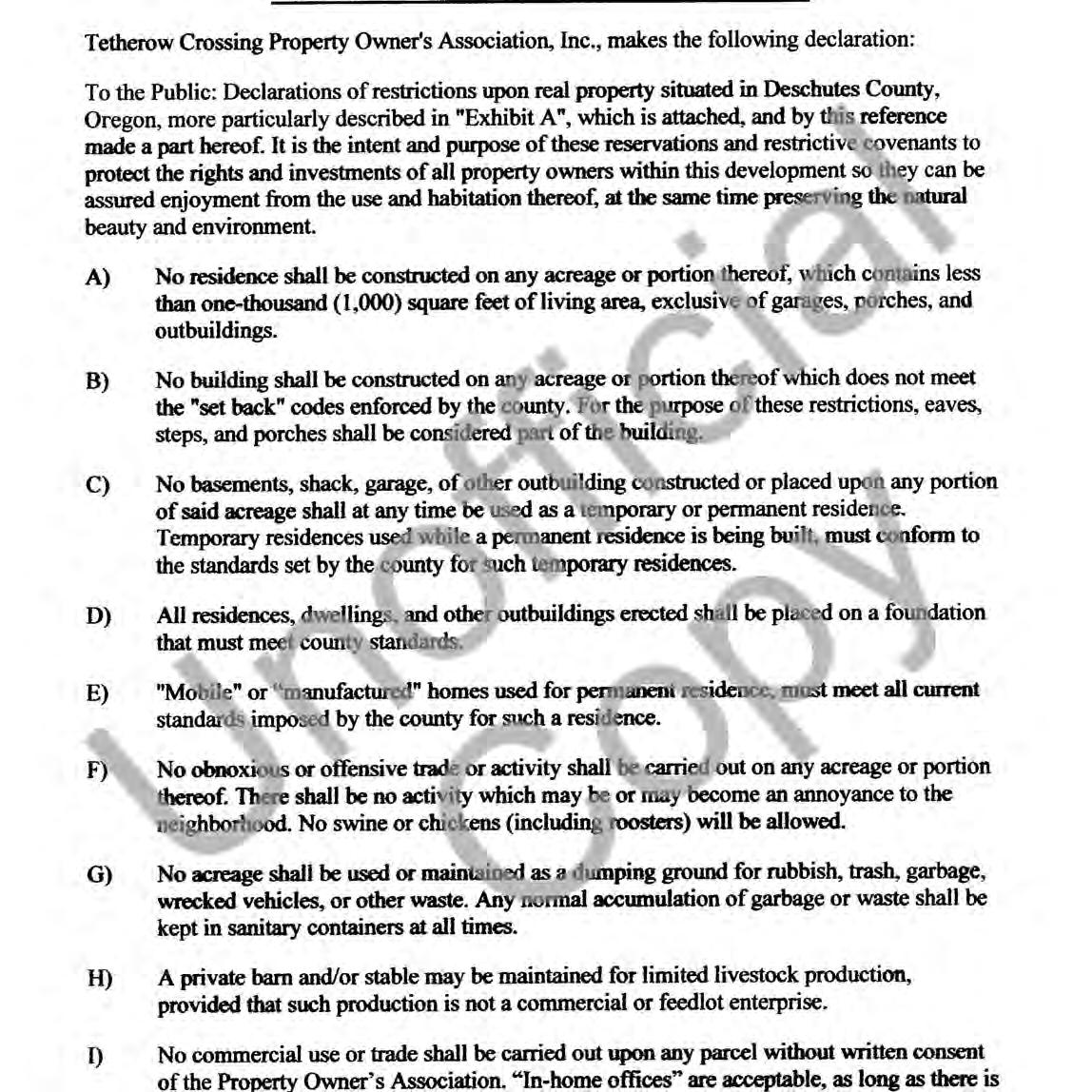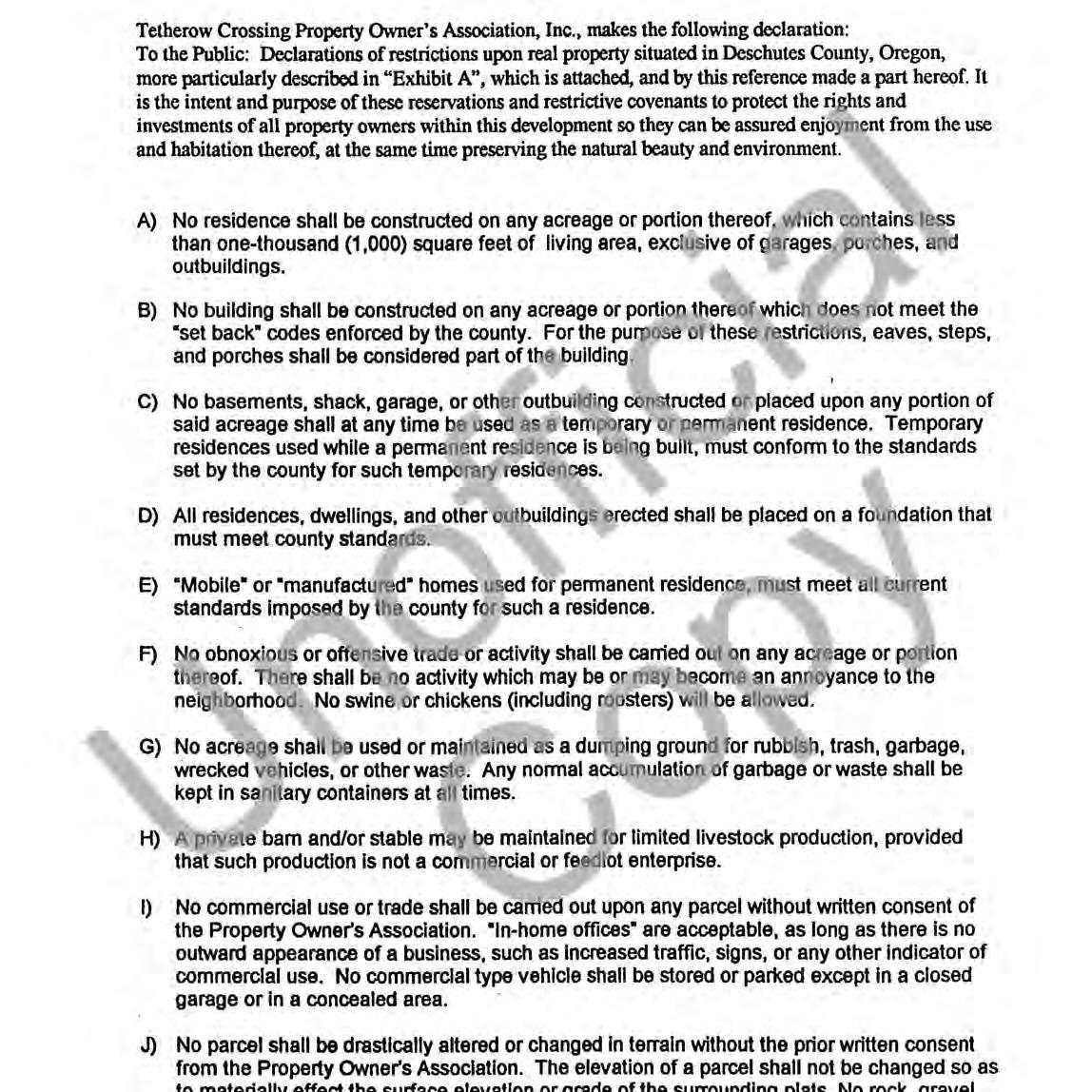 Tetherow Crossing, Phase 2 - CC&R's