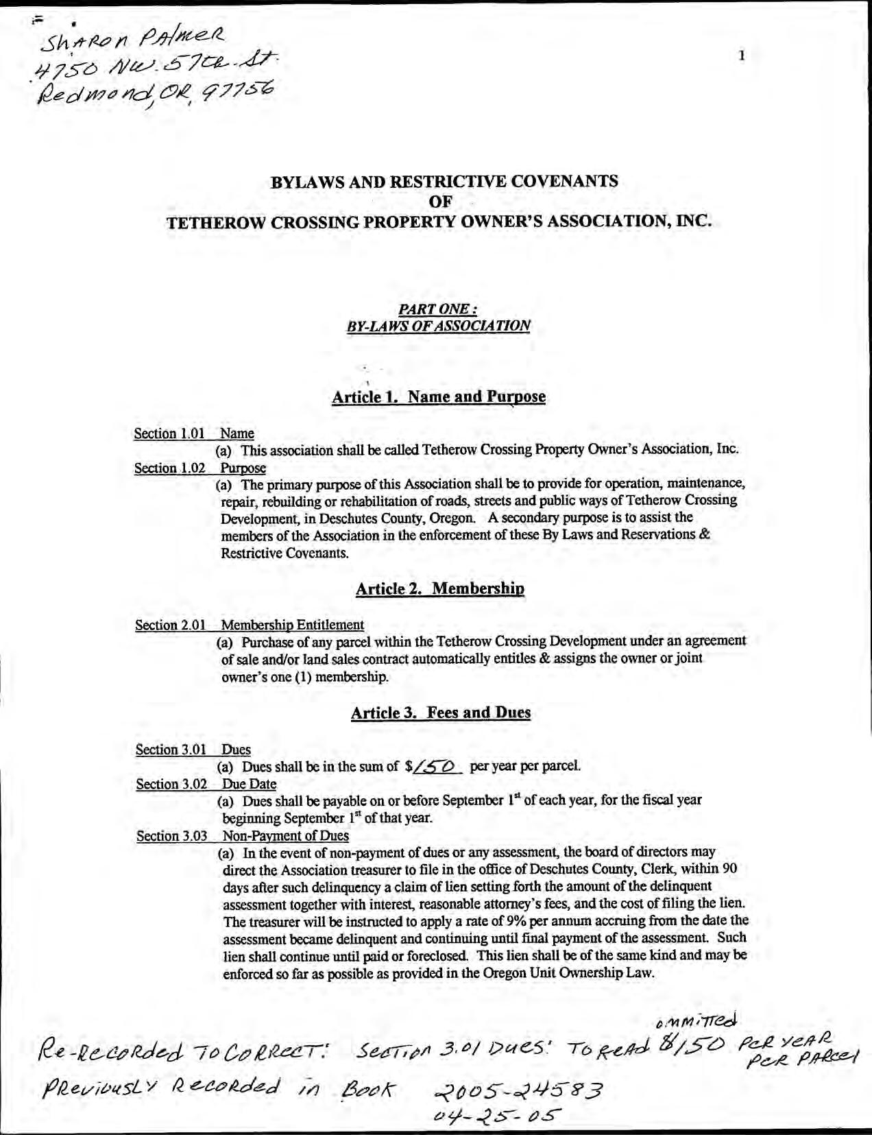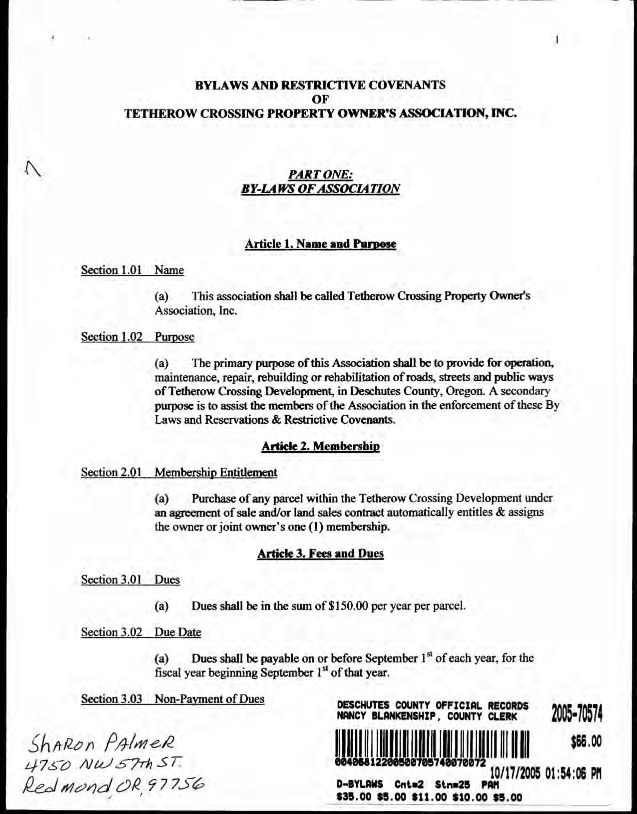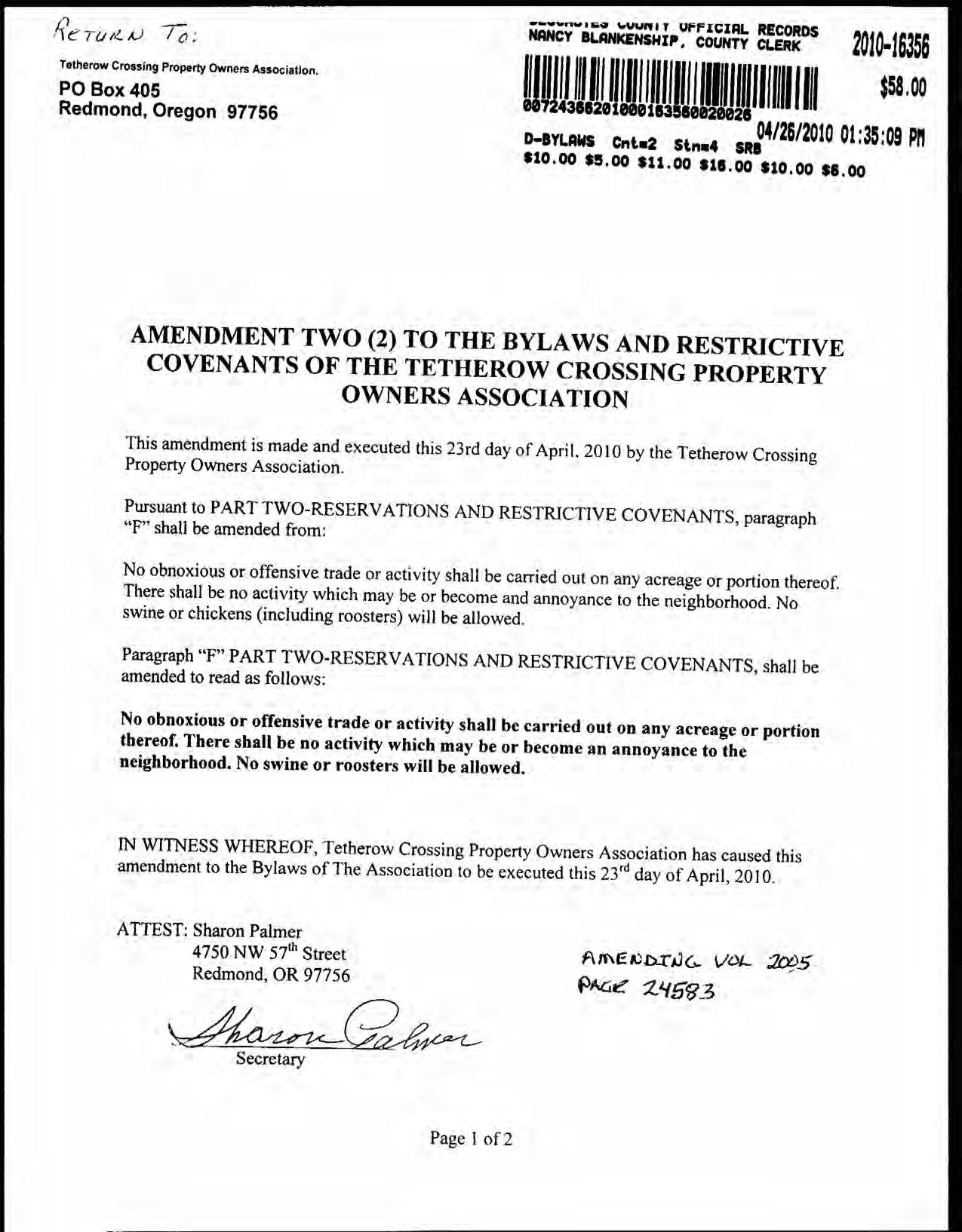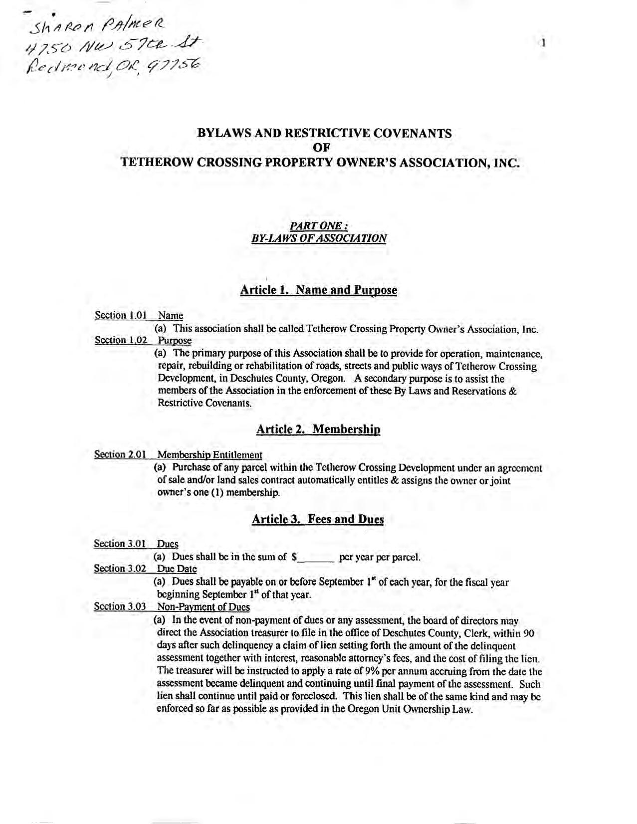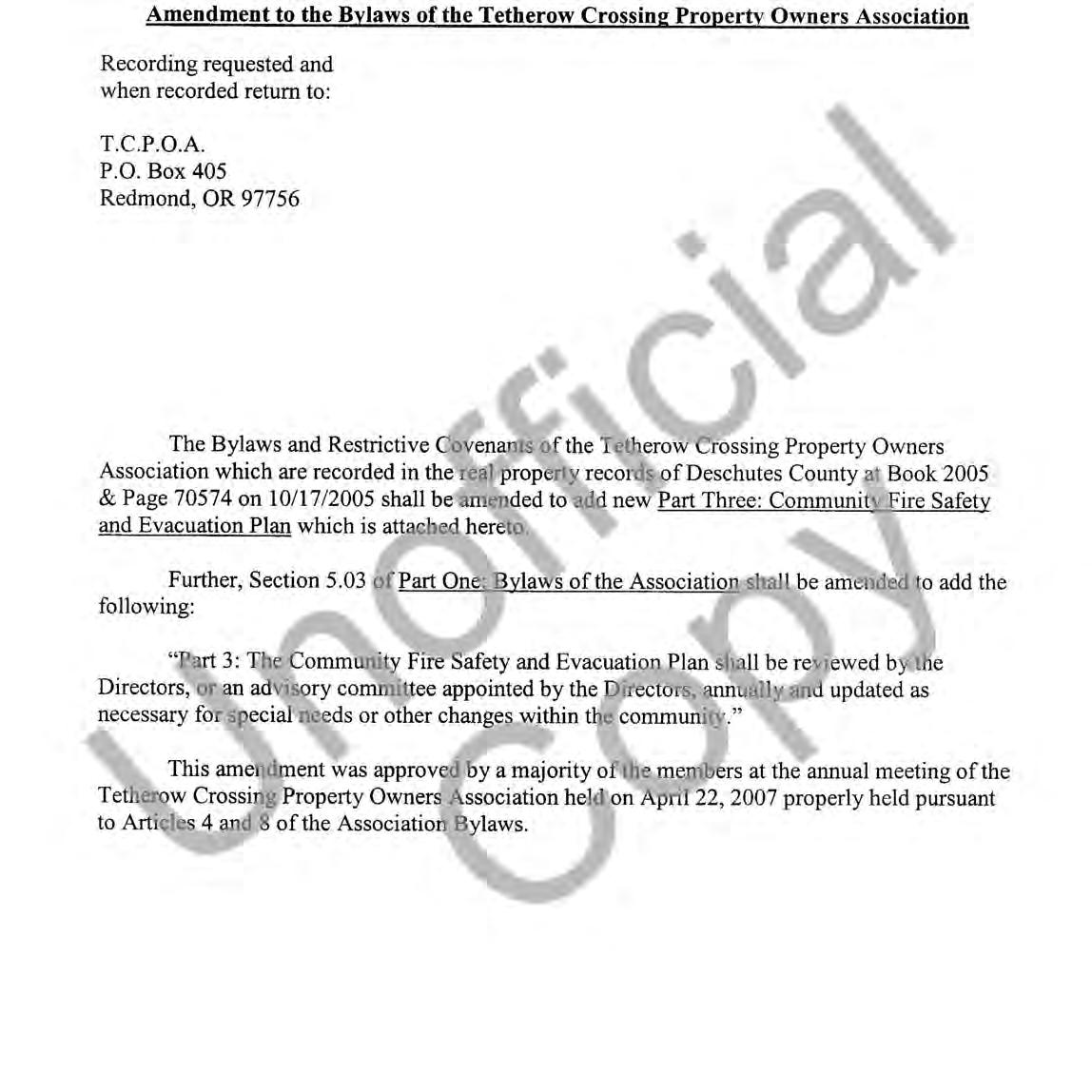 Tetherow Crossing, Phase 2 - CC&R's
