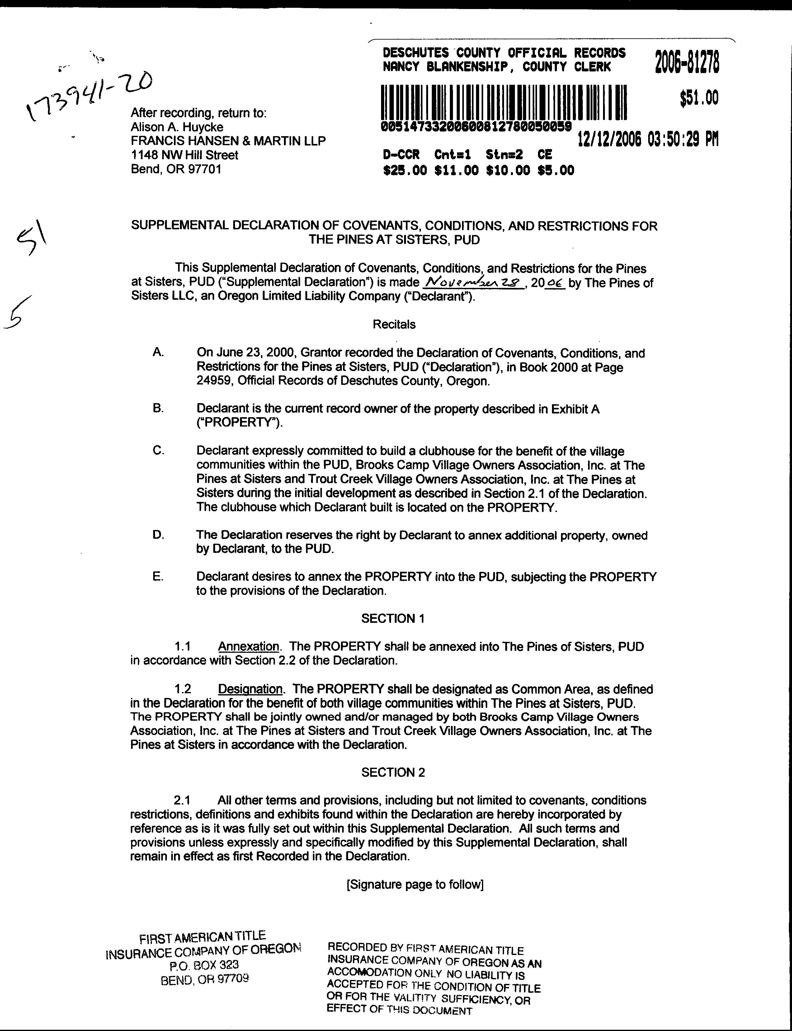 The Pines at Sisters PUD CC&R's by info-deschutestitle - Issuu