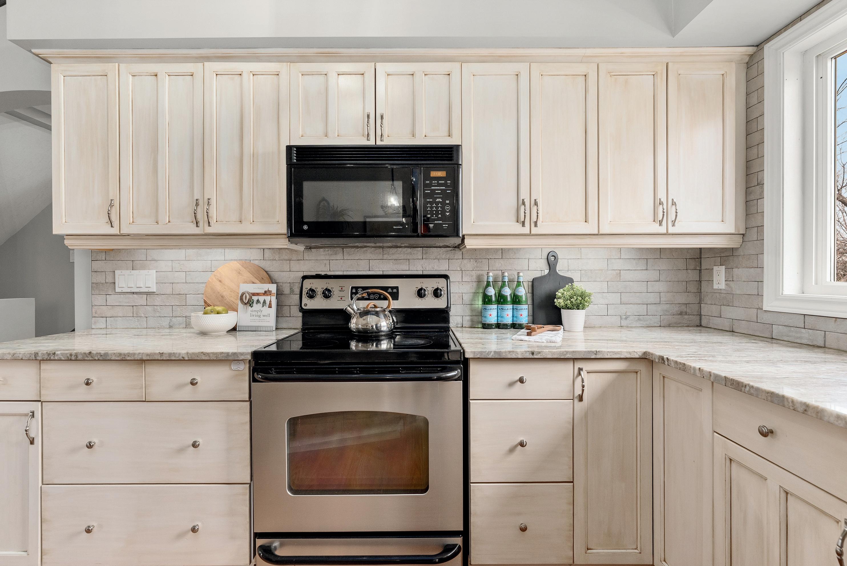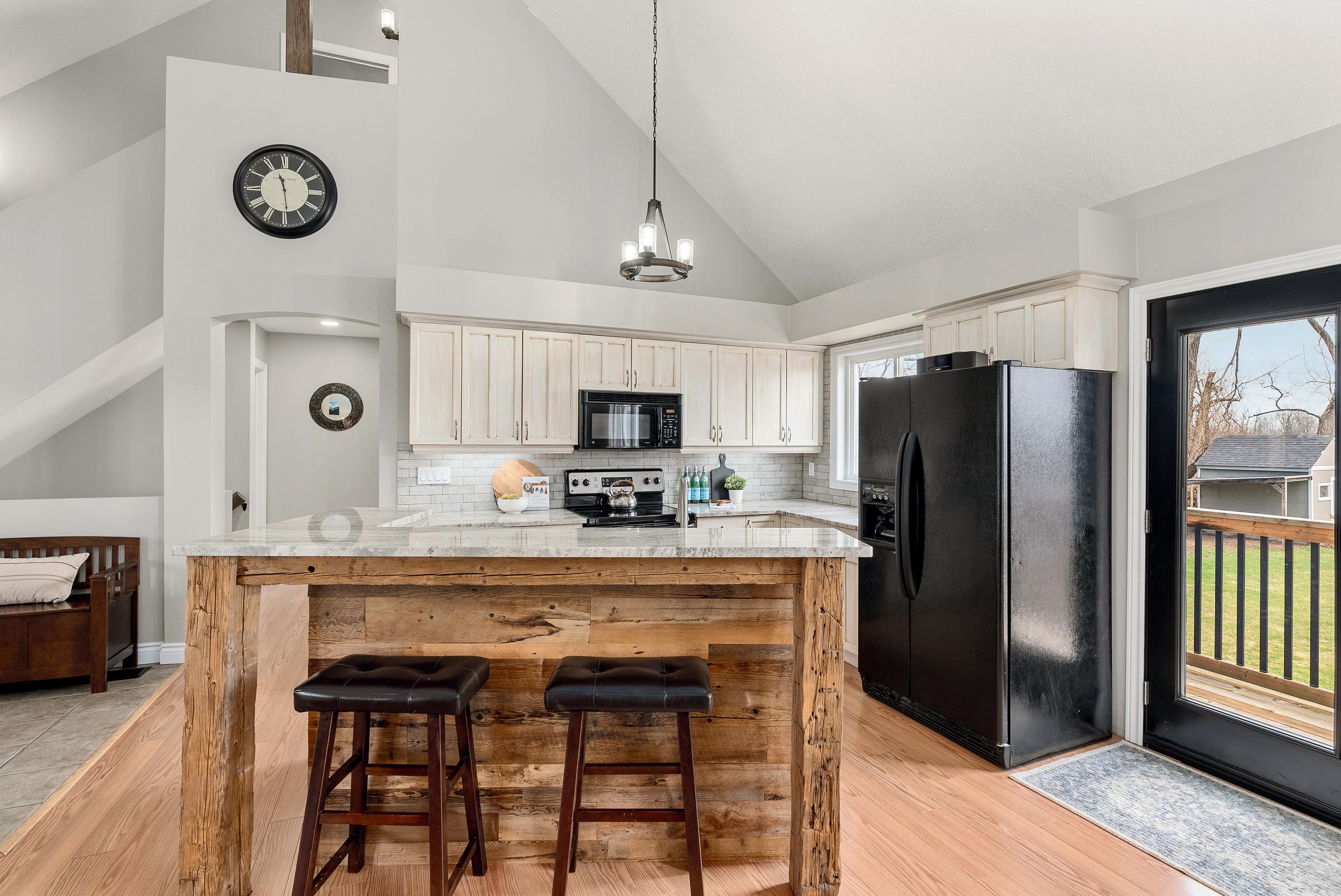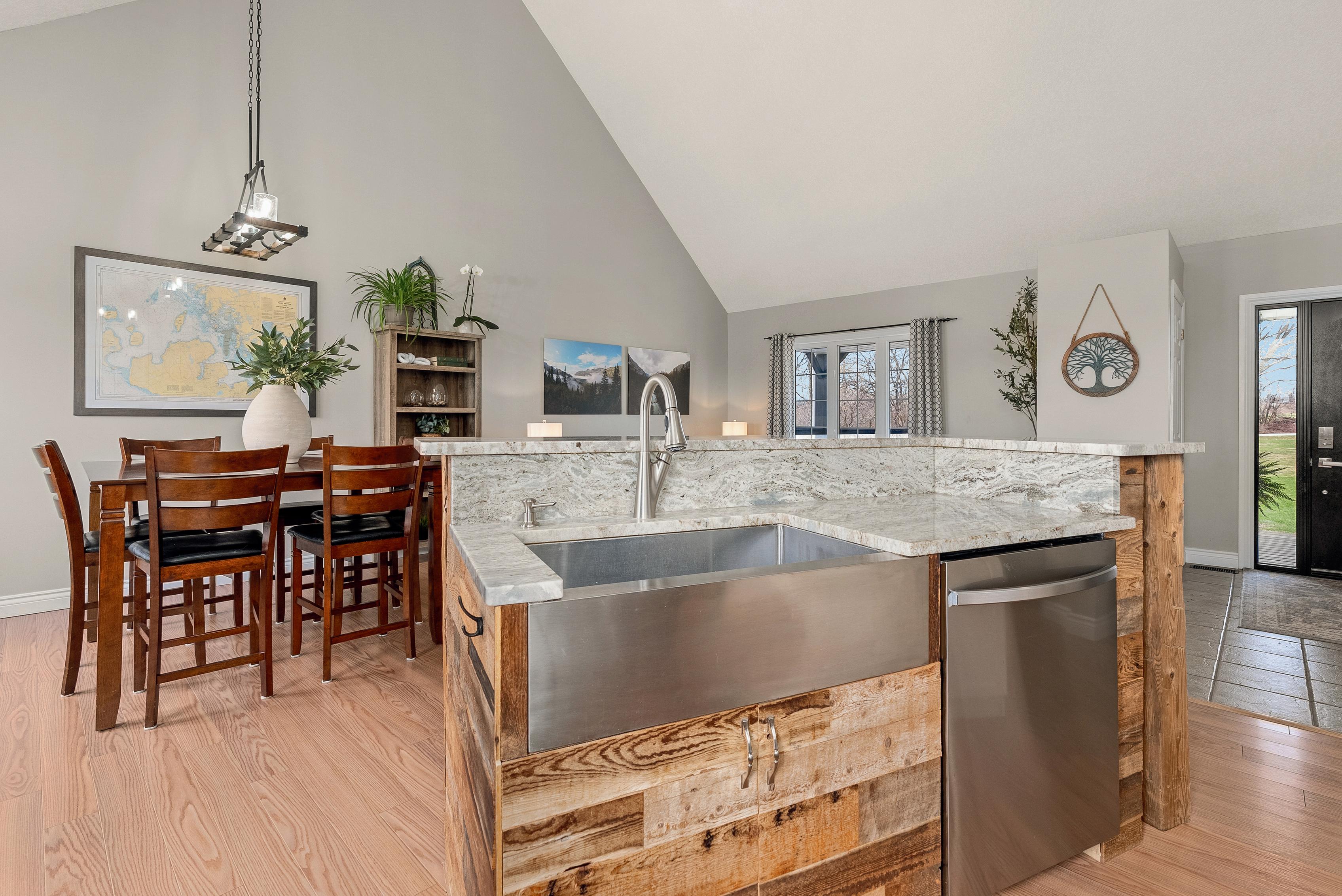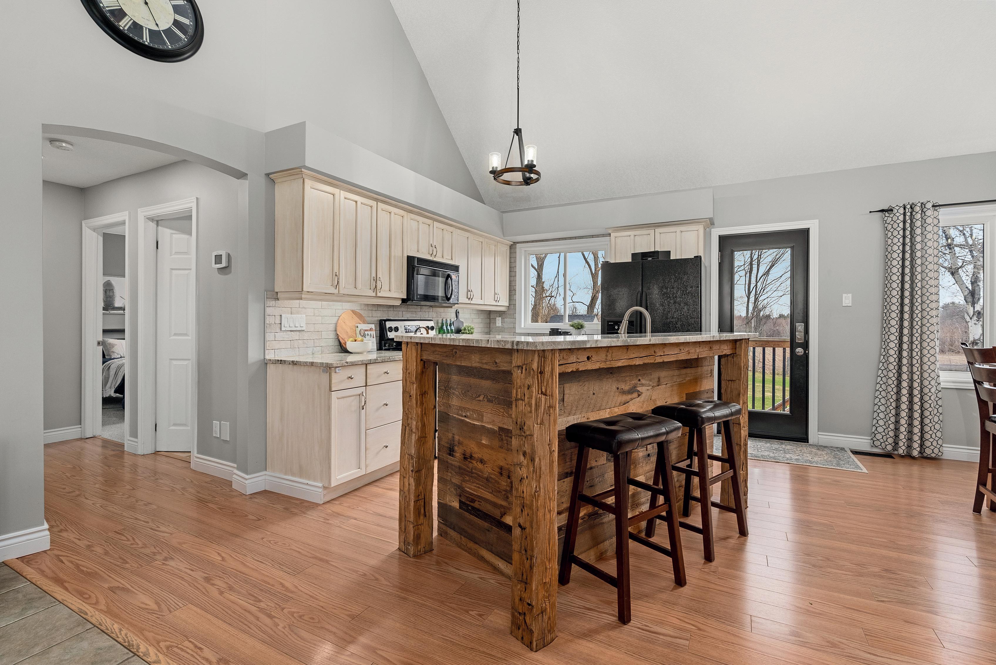 The kitchen is designed to be both practical and inviting, with an eat-in layout that naturally becomes a central gathering space. With ample prep area and connection to the main living space, it supports both everyday meals and casual entertaining.