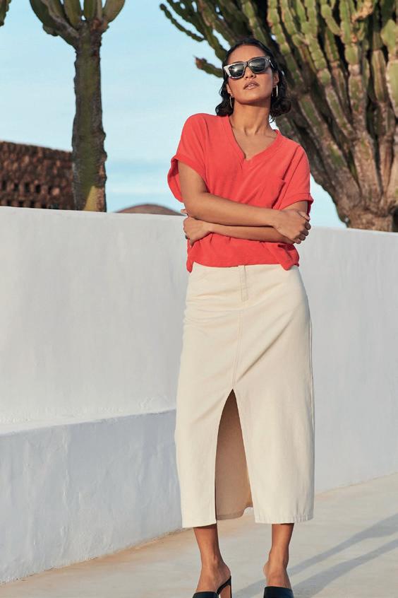 Denim is een tijdloos materiaal bekend om zijn stevige katoenen textuur. Oorspronkelijk populair geworden door de blue jeans, nu uitgegroeid tot een veelzijdige stof gebruikt voor talloze items. De must-have voor dit seizoen is de lange denim rok. Verkrijgbaar in verschillende wassingen en kleuren.