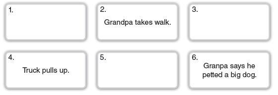 3. Jon held the ball in his hands. He bounced it slowly on the ground. Once. Twice. He crouched low and then jumped. The ball flew into the air. Up, up, up, it went. Then down, down, down, into the basket. "Yes!" he yelled. "Nothing but net!"