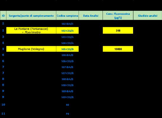 risultati della colorazione e del monitoraggio della sorgente del Muglione (Stazzema - LU)