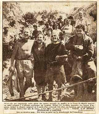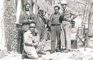 Monte Corchia: Tom Morgan, Beppo Occhialini, un cavatore, A. Cigna, G. Cappa