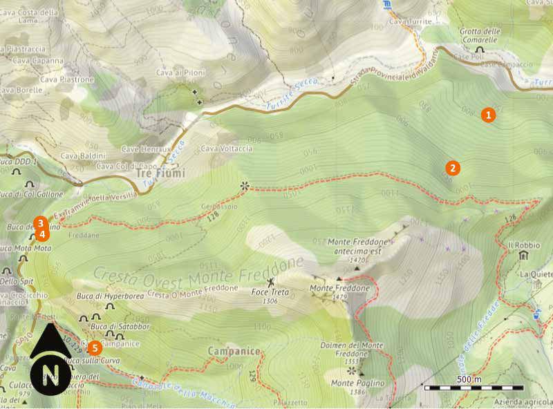 I rilievi di piccole cavità o di aree circoscritte sono ottimi da allegare agli articoli, magari inseriti a pagina intera. Cartografie ed immagini esplicative dell’area di interesse (es: geolocalizzazioni su google maps o simili) possono essere inserite come file .jpg previa l’indicazione della fonte nella didascalia. Anche in questo caso attenzione alle dimensioni di eventuali segni grafici nelle immagini.