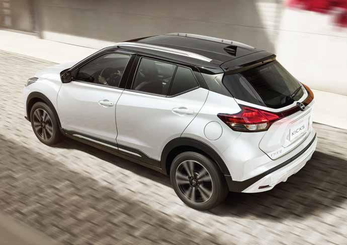 16 pulgadas diamantadas con detalles en color negro, parri lla delantera en cromo, espejos exteriores en color negro bri llante, salida de escape croma da, emblema Roadtrip en el pi lar C, y vinilos Roadtrip debajo de espejos y en el alerón. En el interior presenta: display de conductor 3D, asientos de tela, cuero y alcántara, asientos con costura en contraste Road trip, paneles de puerta con costura en contraste Roadtrip, alfombras Roaddtip, tela de te cho interior en negro, y carga dor inductivo de celular.