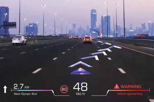 Esto mejora la experiencia de conducción, pues el conductor puede enfocar y desenfocar iconos virtuales de manera natural, como lo haría con objetos reales, creando una experiencia más cómoda. Por otro lado, el tamaño de la caja ocular en la que se mues-