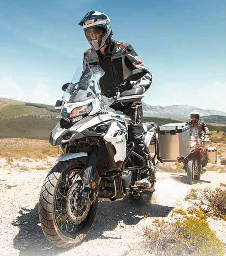 ple en cada rueda con ABS de doble canal, y sistema automá tico de encendido de luces. Su rueda delantera es de 19” mien tras que la trasera es de 17”, con el asiento a 794 mm del piso.