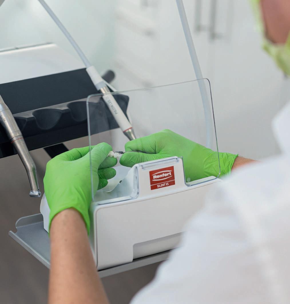 In molti studi, i piccoli ritocchi extra orali alla poltrona sono all’ordine del giorno. Mandare tutto al laboratorio è poco pratico, ma lavorare senza un vero aspiratore crea disordine e danneggia l’immagine dello studio. “Abbiamo notato che, per dei piccoli ritocchi, lo studio dentistico è spesso costretto a ricorrere a soluzioni di emergenza. Per questi interventi, l’aspirazione del riunito non è adatta”, afferma Jens Erich, Product Manager di SILENT XS.