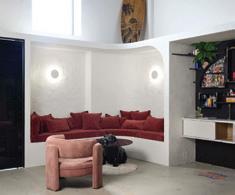 Think terrazzo tiles, lush green tones and a welcoming open layout that lets you peek