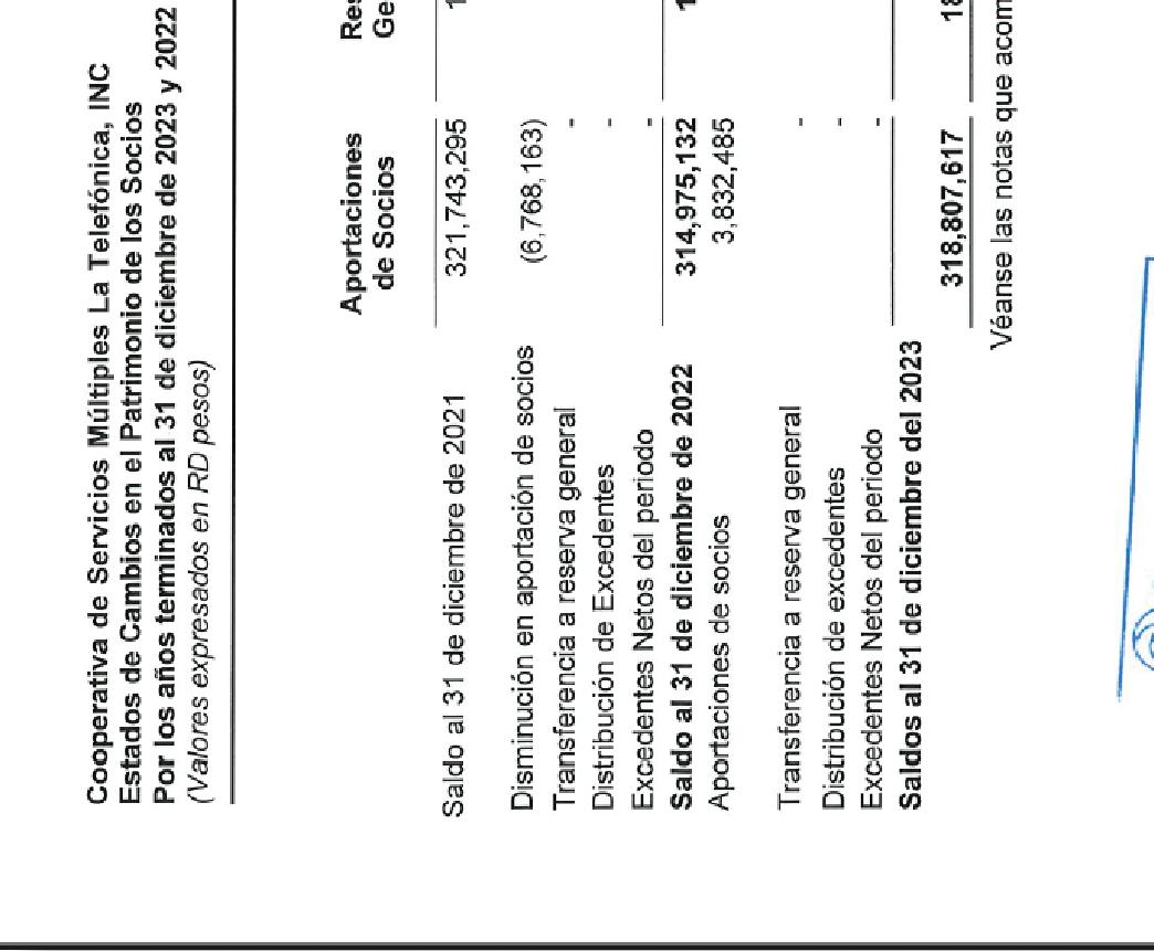 Las aportaciones de capital cuentan con un total de RD$318.8 millones y unos excedentes netos de RD$32.3 millones para el año 2023, que serán distribuidos por orden de esta XXXVI Asamblea General Ordinaria de Delegados.