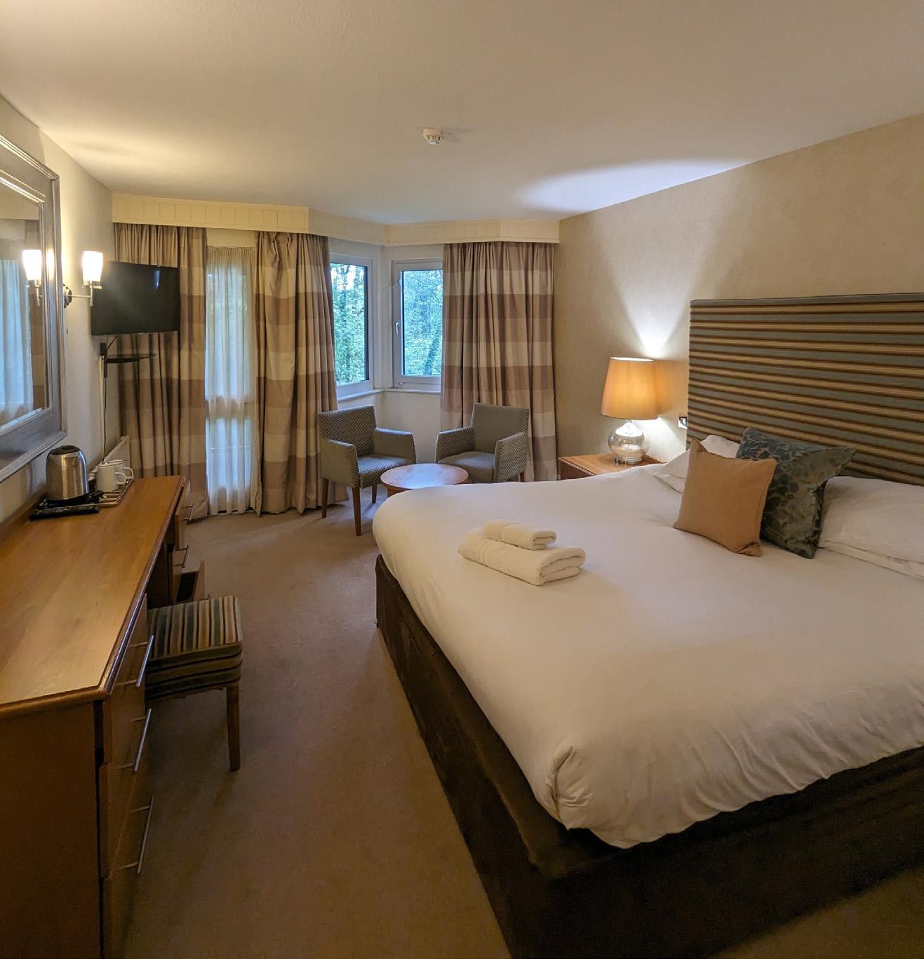 The hotel’s comfortable Double, Twin and Family rooms are thoughtfully designed, with woodland or garden views creating a calm backdrop for every stay. Accessible ground-floor rooms ensure comfort for all guests, while modern amenities including free Wi-Fi, flat-screen TVs and 24-hour room service, add convenience.