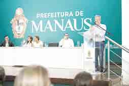 Na solenidade, o prefeito estava acompanhado da presidente do Fundo Manaus Solidária, a primeira-dama Elisabeth Valeiko Ribeiro, do diretor-presidente do Instituto Municipal de Planejamento Urbano (Implurb), Claudio Guenka, da secretária Municipal da Mulher, Assistência Social e Cidadania, Conceição Sampaio, do vice -presidente de Habitação e Assuntos Fundiários, José de Arimatéia, além do presidente da Comissão de Constituição e Justiça,