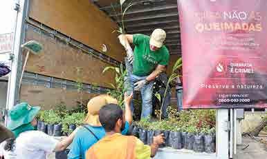 APrefeitura de Manaus realizou ontem, 21/8, na Colônia Oliveira Machado, na Zona Sul, mais uma edição do Pedágio Ambiental, com a finalidade de realizar a doação de mudas à população e, neste período de verão amazônico, sensibilizar as pessoas quanto à importância do combate às queimadas. Nesta edição desta, foram distribuídas 600 mudas de espécies frutíferas, ornamentais e medicinais, juntamente com panfletos informativos sobre queimadas. O trabalho de sensibilização contra a prática da queima de resíduos, feito ao longo do ano inteiro pelos técnicos da Divisão de Educação Ambiental da Secretaria Municipal de Meio Ambiente e Sustentabilidade (Semmas), é intensificado nesta época do ano. O Pedágio Ambiental surgiu a partir da determinação do prefeito Arthur Virgílio Neto de ampliar o acesso da população às mudas.