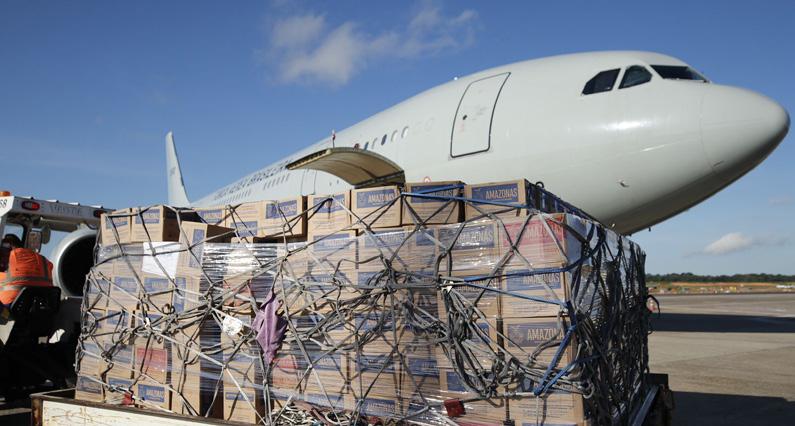 Produzidos pela Companhia de Saneamento do Amazonas (Cosama), os copos de água foram transportados em um avião da Força Aérea Brasileira (FAB). A previsão é de que sejam enviados mais 70 mil copos no decorrer das próximas semanas.