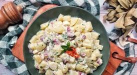 4 batatas inglesa, 100 gramas de palmito picado, 30 gramas de azeitonas picadas, 1 cebola roxa picada, 4 colheres de sopa de maionese, Salsinha a gosto, Sal a gosto