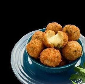 200 ml de arroz cozido, 50 ml de farinha de rosca, 2 colheres de sopa de queijo parmesão ralado, Pimenta-doreino a gosto, 2 colheres de sopa de cheiro-verde, 1 ovo, Queijo mussarela em cubos, Óleo para fritar
