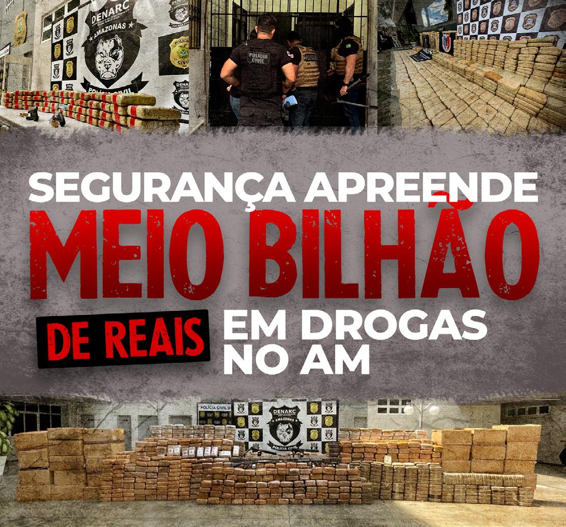 Em 2024, o Amazonas apreendeu cerca de 25 toneladas de drogas durante operações realizadas pelas forças de segurança na capital e no interior. O Estado lidera ranking de apreensões de entorpecentes na região Norte, aponta o Ministério da Justiça e Segurança Pública Página 5