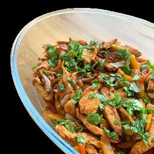 Tempere o frango com sal, pimentas, cominho e páprica; adicione o suco de limão e deixe marinando por 30 minutos; corte as cebolas e os pimentões em tiras; coloque um pouco de azeite em uma frigideira. Grelhe o frango e retire da panela; refogue a cebola e os pimentões; adicione o sal e volte o frango para a frigideira; coloque o coentro por cima e sirva com o acompanhamento que preferir! Bom apetite.