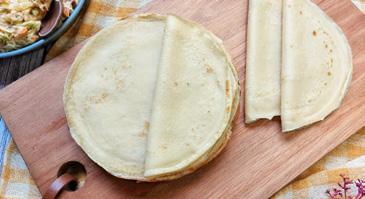 1e 1/2 xícara de chá de leite; 1 xícara de chá de farinha de trigo; 2 ovos; 1 colher de chá de sal e manteiga para fritar.