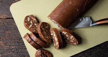200 g de chocolate ao leite ou meio amargo em cubinhos; 200 g de bolacha maisena quebrada em pedaços médios; 100 g de manteiga em temperatura ambiente; ½ xícara de castanhas torradas e 1 colher (sopa) de rum (15 ml)