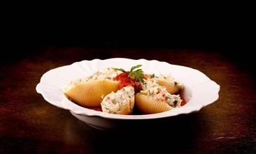 Com o conchiglione já frio, recheie com a mistura e distribua a massa em uma assadeira, cubra com o molho e polvilhe o parmesão ralado por cima. Leve ao forno preaquecido a 180° por dez minutos ou até gratinar. Sirva como preferir.