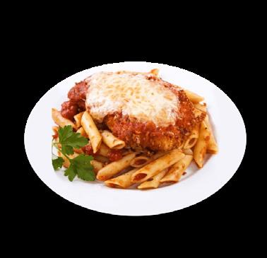 Bife: 4 bifes de coxão mole de angus com 120 g cada; 1 colher (sopa) de sal; imenta preta a gosto; ½ xícara de farinha de trigo; 1 xícara de farinha panko; 2 ovos. Macarrão: 400 g macarrão parafuso (grano duro); 1,5 kg tomate pelado; ½ xícara de azeite extra virgem; 4 colheres (sopa) alho picado; 2 colheres (sopa) cenoura picada; 2 colheres (sopa) cebola picada; sal a gosto; pimenta-preta a gosto; 5 colheres (sopa) manjericão; 1 xícara de queijo meia cura.