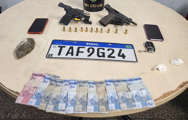 Na noite deste domingo (15/09), policiais militares prenderam três homens em flagrante durante patrulhamento de rotina na Avenida Itaúba, bairro Jorge Teixeira, zona Leste de Manaus. Tharlisson Felipe Sá Menezes, de 24 anos, Jardelmar Vieira Batista, de 27 anos, e Patrick Goveia da Costa, de 23 anos, foram abordados em um veículo Chevrolet Onix branco após tentar fugir da viatura policial. Segundo o relatório de ocorrência, os suspeitos aceleraram e realizaram manobras bruscas ao notar a aproximação da polícia. Durante a fuga, tentaram esconder objetos dentro do carro. Após perseguição, os policiais conseguiram parar o veículo e realizar a abordagem.