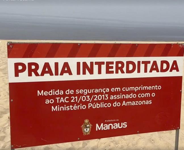 O banho está proibido na praia da Ponta Negra. A medida de segurança da Prefeitura de Manaus é uma consequência da severa estiagem. Nesta terça-feira, o rio Negro atingiu a conta de 15,77 metros