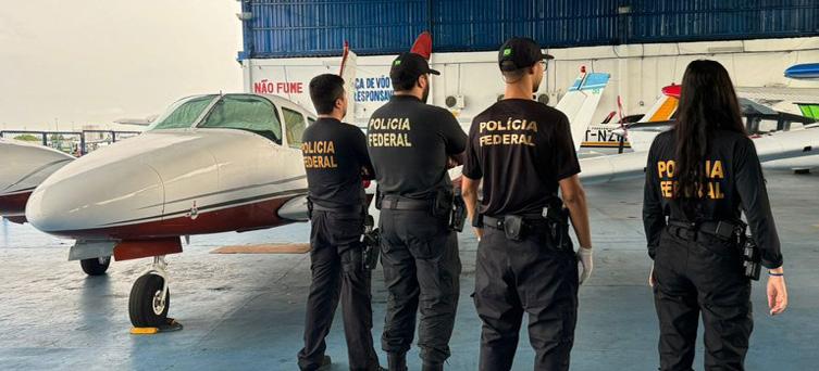 Durante a ação, os agentes localizaram uma sacola e uma caixa de papelão contendo dinheiro em espécie dentro de um avião fretado. A quantia ainda não foi informada pela PF.