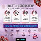 O amazonas registrou 856 novos casos, nessa quintafeira, 7/5, totalizando 10.099 casos confirmados do novo coronavírus no estado, segundo boletim epidemiológico divulgado pela Fundação de Vigilância em saúde do amazonas (FVs-aM). Foram confirmados mais 55 óbitos pela doença, elevando para 806 o total de mortes, sendo 43 nas últimas 24 horas. O boletim aponta que 2.699 pessoas com diagnóstico de covid-19 estão em isolamento social ou domiciliar. Outras 6.159 pessoas já passaram pelo período de quarentena (14 dias) e se recuperaram da doença. entre os casos confirmados de covid-19 no amazonas, há 435 pacientes internados, sendo 274 em leitos clínicos e 161 em utIs. Há ainda outros 1.312 pacientes internados considerados suspeitos e que aguardam a confirmação do diagnóstico.
