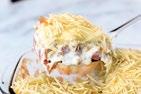 Cozinhe as batatas até ficarem macias. No liquidificador, coloque as batatas cozidas, o leite, sal a gosto, e virar um purê. escalde as salsichas por aproximadamente 2 minutos, em seguida corte-as ao meio. Com auxílio de um rolo abra seus pães deixando-os finos e compactos. em uma travessa coloque uma pequena quantidade do molho de tomate e em seguida faça um camada com pão. acrescente mais molho de tomate e faça uma camada de salsichas. passe requeijão sobre a camada de salsicha, milho a gosto, e faça outra camada com pão. Faça uma camada de purê sobre os pães, cubra com muçarela e leve ao forno pré-aquecido a 180°C por aproximadamente 30 minutos ou até gratinar. para finalizar acrescente batata palha sobre a camada de muçarela.