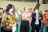 que estão em execução na cidade, com todos os cuidados necessários à saúde dos trabalhadores, porque os recursos já estavam assegurados. Reduzimos o ritmo para evitar aglomeração, mas vamos cumprir o prazo e entregar uma obra vital para a mobilidade e um marco na transformação urbanística da cidade, por se tratar de uma bela arquitetura e integração”, afirmou o prefeito, acompanhado da presidente do Fundo Manaus Solidária, a primeira-dama Elisabeth Valeiko Ribeiro, do secretário municipal de Infraestrutura, Kelton Aguiar, e engenheiros
