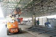 removidas, dando espaço a estruturas novas, contando também com pintura da cobertura e de seus suportes metálicos. Além disso, são feitas as instalações elétricas. Após a plataforma central ser trabalhada, as ações passarão para as plata-