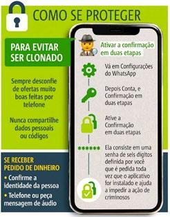 O delegado reforçou para que usuários não enviem o código de verificação a números desconhecido ou conhecidos. “Então nunca forneça este código para confirmar qualquer serviço porque seu Whats será clonado. É por último, ative a verificação de duas etapas em todas suas redes sociais, inclusive no whats para aprimorar a segurança contra clonagem”, alertou Paixão.