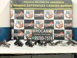 um adolescente de 17 anos foi apreendido, na noite deste domingo, 30/8, por policiais das Rondas Ostensivas cândido Mariano (Rocam), após ser flagrado com sete armas, sendo quatro pistolas e três revólveres calibre 38. A apreensão, de acordo com o comandante de policiamento Especializado (cpE), coronel Bruno Azevedo, a apreensão ocorreu no Novo Aleixo, na zona Norte de Manaus. um denunciante informou aos policiais da Rocam que em uma casa na Rua 10, uma pessoa estava guardando várias armas. Os policiais foram ao local, por volta das 22h20, e conseguiram, confirmar as informações. No local, a polícia apreendeu o adolescente, que segundo o cpE, já tinha três atos infracionais pelo crime de tráfico de drogas. com o adolescente foram apreendidos os três revólveres, duas pistolas calibre 380, uma pistola calibre .32, e outra calibre .40. O jovem foi apreendido e encaminhado a delegacia Especializada em Apuração de Atos infracionais (dEAAi) para procedimentos cabíveis.