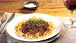 Modo de preparo para a massa, cozinhe o talharim seguindo as orientações da embalagem. para o ragu, tempere as costelas com suco de limão. em uma panela de pressão, aqueça o azeite e doure a carne. Junte o alho e a cebola e refogue. Acrescente o louro e a água. tampe a panela e cozinhe em fogo baixo, por cerca de 30 minutos após pegar pressão ou até a carne amaciar. Desligue e espere sair a pressão. Retire os pedaços de carne da panela e desfie-os. Retorne a carne desfiada para a panela e adicione o vinho e o molho inglês. Deixe cozinhar por cerca de 20 minutos. Sirva porções individuais de macarrão com molho, polvilhadas com salsa.