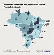 De acordo com a pesquisa do IBGE, o Amazonas aparece a traz dos estados de Roraima e Amapá, mas a frente de Pará, Rondônia e Acre em relação ao percentual de testagem da covid-19 até setembro. O Distrito Federal foi a Unidade da Federação com maior percentual de testes realizados com 22,2%, seguido por Piauí (17%) e Goiás (16%). Os menores percentuais foram registrados em Pernambuco (6,8%), Acre (6,9%) e Minas Gerais (7,8%).