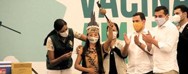 trabalhadores da saúde que estão na linha de frente do enfrentamento da Covid-19 e a população indígena aldeada maior de 18 anos. Esse público será atendido com as primeiras 256 mil doses já disponíveis. Conforme forem liberadas mais vacinas, essas serão distribuídas para imunização de idosos com mais de 75 anos, que também estão incluídos na primeira etapa do planejamento. De acordo com o Governo do Estado, o estoque de vacina atual entregue ao Amazonas pelo Ministério da Saúde (MS) é sufi-