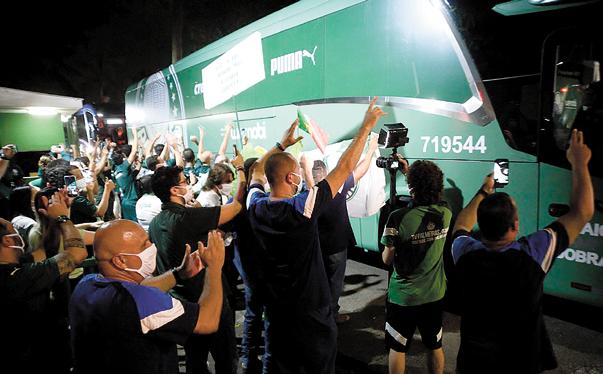 A delegação do Palmeiras embarcou para a cidade de Doha, no Catar, na noite desta terça-feira. O voo decolou por volta das 23h50 (de Brasília), com alguns minutos de atraso. A chegada está prevista para 12h20 (também horário de Brasília, 18h20 no horário local). Alguns torcedores foram até a porta da Academia de Futebol do Verdão para se despedir do elenco, que se classificou para disputar o Mundial de Clubes da Fifa após vencer o Santos, no Maracanã, e conquistar a Libertadores. No aeroporto de Guarulhos, mais torcedores marcaram presença, mas não conseguiram se aproximar do ônibus da delegação. Alguns palmeirenses desrespeitaram protocolos de segurança, não usaram máscara e se aglomeraram na região. O Palmeiras chegará a Doha e passará por exames do tipo PCR, de acordo com protocolo da Fifa na prevenção à Covid-19. Depois, a delegação aguardará os resultados isolada no hotel. A estreia no Mundial é no próximo domingo, às 15h (de Brasília). O adversário será o vencedor do confronto entre Tigres, do México, e Ulsan Hyundai, da Coreia do Sul, em jogo que será disputado na quinta-feira, às 11h.