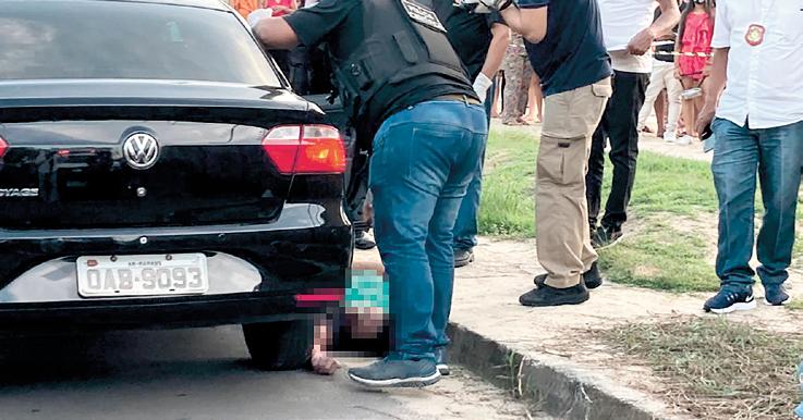 Um distintivo da Polícia Civil e um par de algemas foram encontrados em uma bolsa que estava dentro do veículo onde um casal foi assassinado na tarde desta quinta-feira (4). O crime aconteceu na avenida Marquês da Silveira, no bairro Cachoeirinha, Zona Sul. O homem foi identificado como Reizo Vieira e a mulher permanece sem identificação. Conforme o delegado Guilherme Antoniazzi, da Delegacia Especializada em Homicídios e Sequestros (DEHS), a perícia constatou três tiros na cabeça do homem e um tiro na nuca da mulher. Os disparos possivelmente foram feitos por alguém que estava dentro do veículo, sentado no banco traseiro. No interior do veículo foram localizadas cápsulas de pistola 9 milímetros. Os corpos foram removidos pela equipe do Instituto Médico Legal (IML) e levados à sede do órgão, onde devem passar por exame de necropsia. O veículo modelo Voyage, de cor preta, foi apreendido.