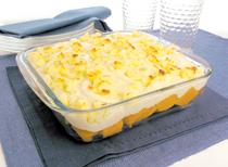 Em uma panela, derreta a manteiga, refogue a cebola rapidamente, adicione a farinha e frite por 2 minutos, mexendo sempre. Despeje o leite, mexendo até engrossar. Coloque o parmesão, a noz-moscada, o sal e misture. Reserve. Em um refratário, coloque a abóbora, cubra com o molho branco, a cebola em rodelas e o queijo coalho. Leve ao forno médio, preaquecido, por 10 minutos ou até gratinar.